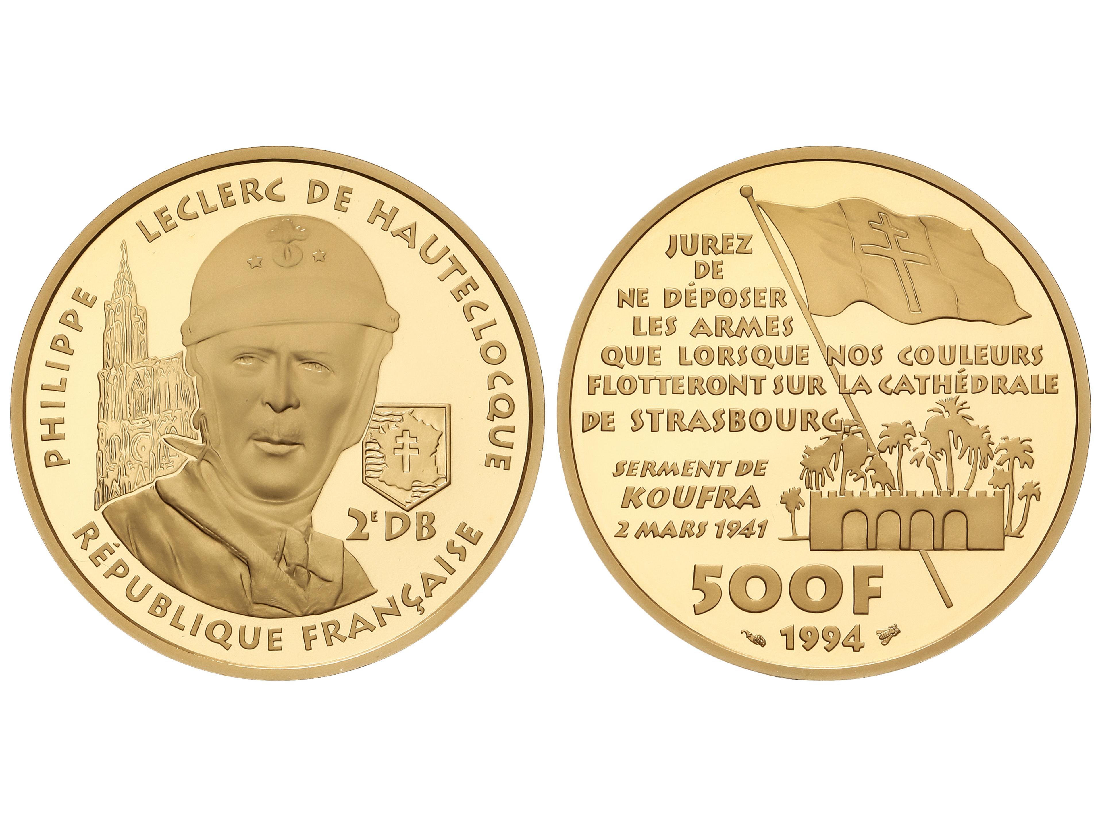 500 Francs. 1994. 16,97 grs. AU (920). 50 Aniversario de la liberación de París. General Leclerc. MUY RARA. Fr-649; KM-1051. Tirada: 432 piezas. PROOF. (Image1)