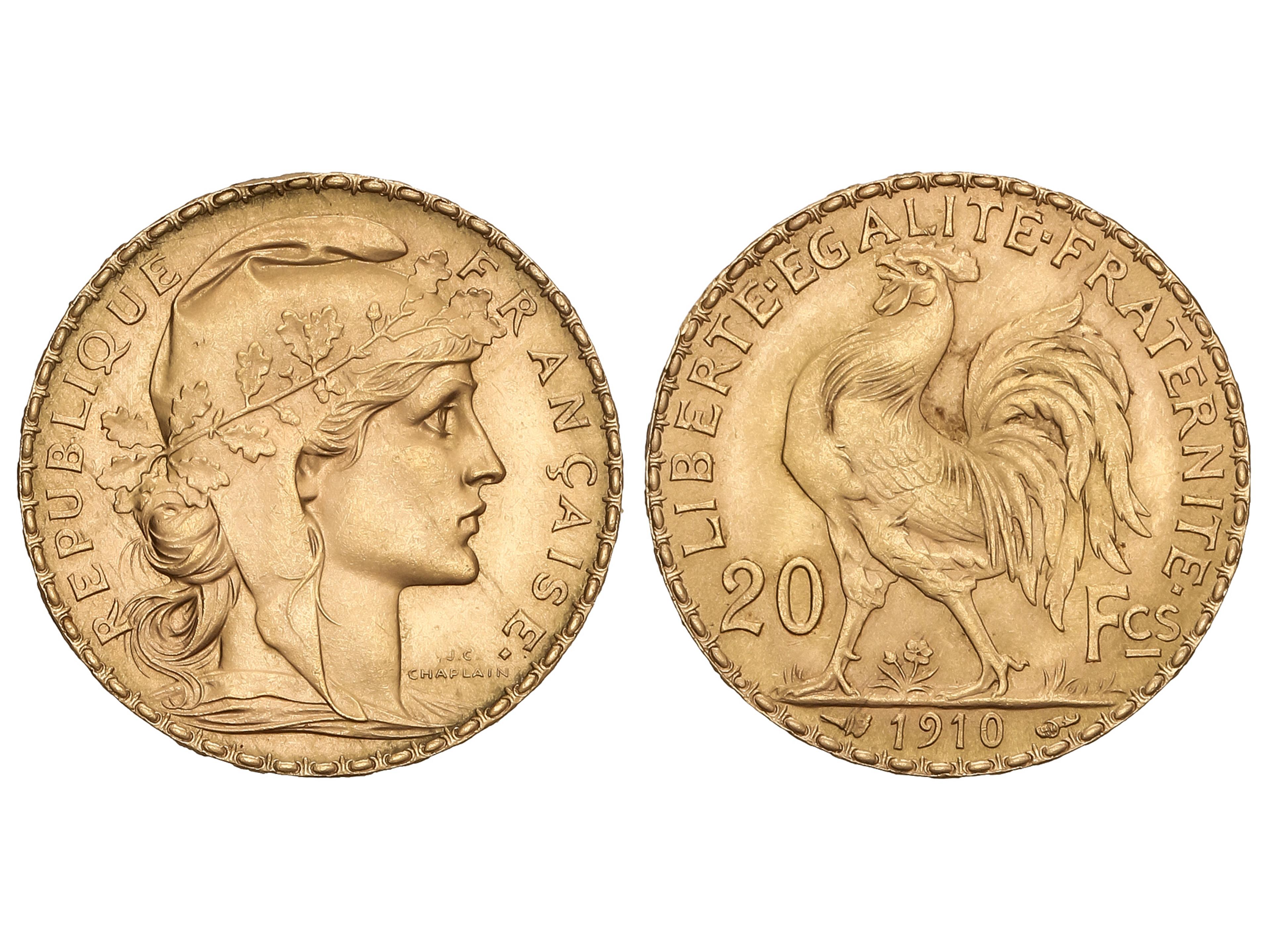 20 Francs. 1910. III REPUBLIQUE. 6,46 grs. AU (900). Gallo. Fr-596a; KM-857. SC-. (Image1)