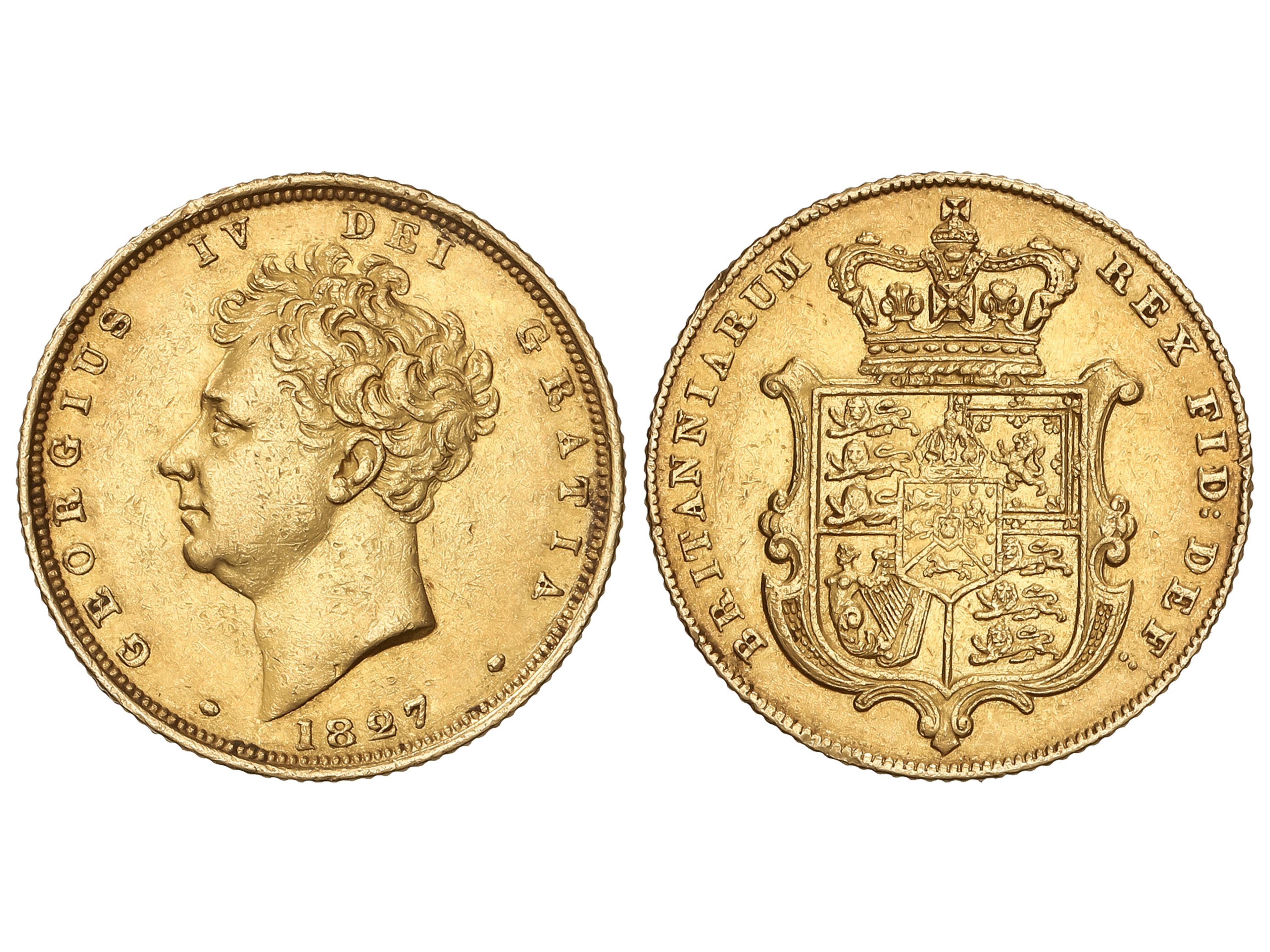 Sovereign. 1827. GEORGE IV. 7,94 grs. AU (917). (Limpiada, golpecito en gráfila). ESCASA. Fr-377; KM-696. MBC. (Image1)