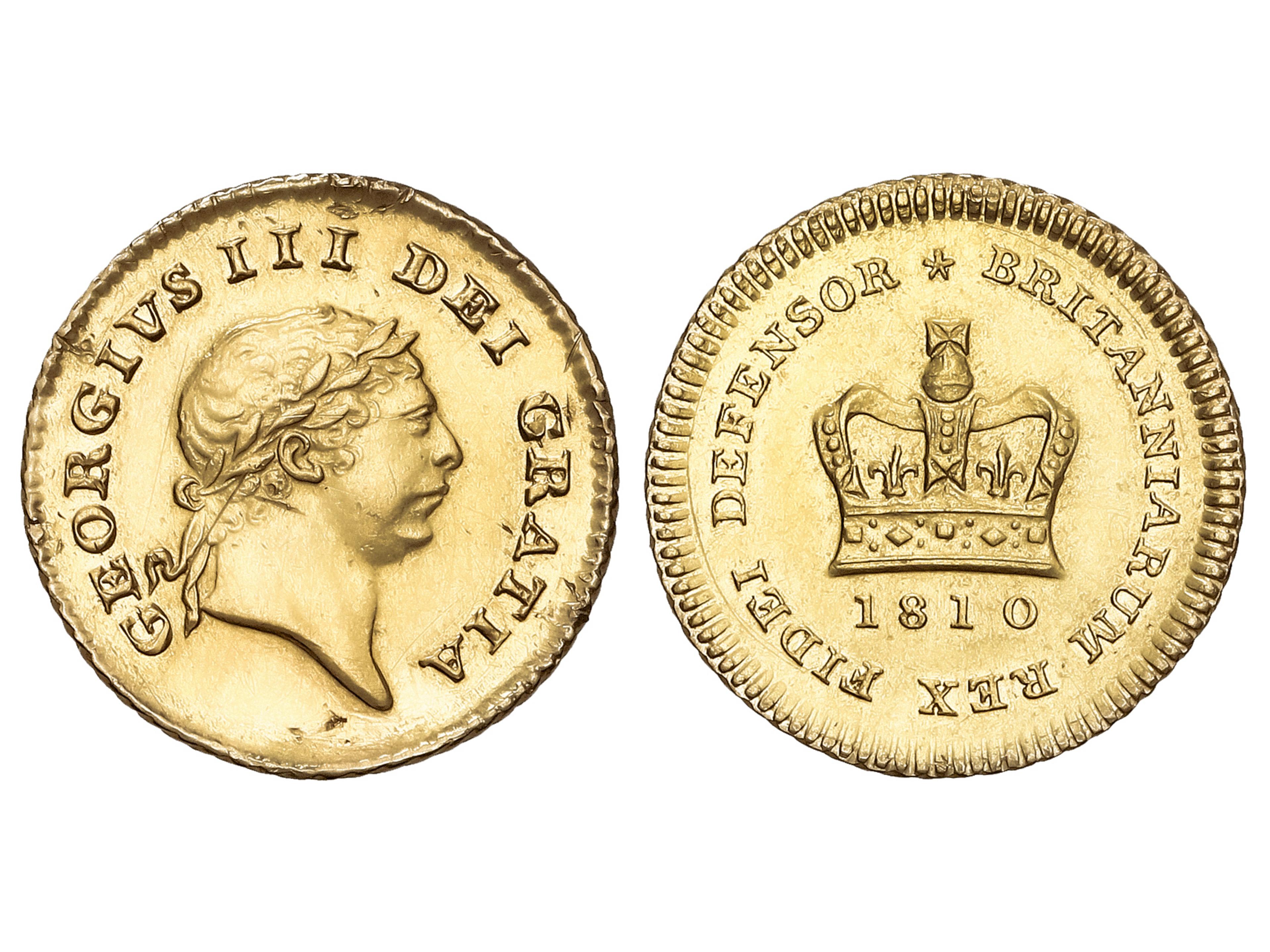 1/3 Guinea. 1810. GEORGE III. 2,79 grs. AU (917). Fr-367; KM-650. EBC. Ex Soler y Llach y Martí Hervera - 29 octubre 2013, n. 1048.