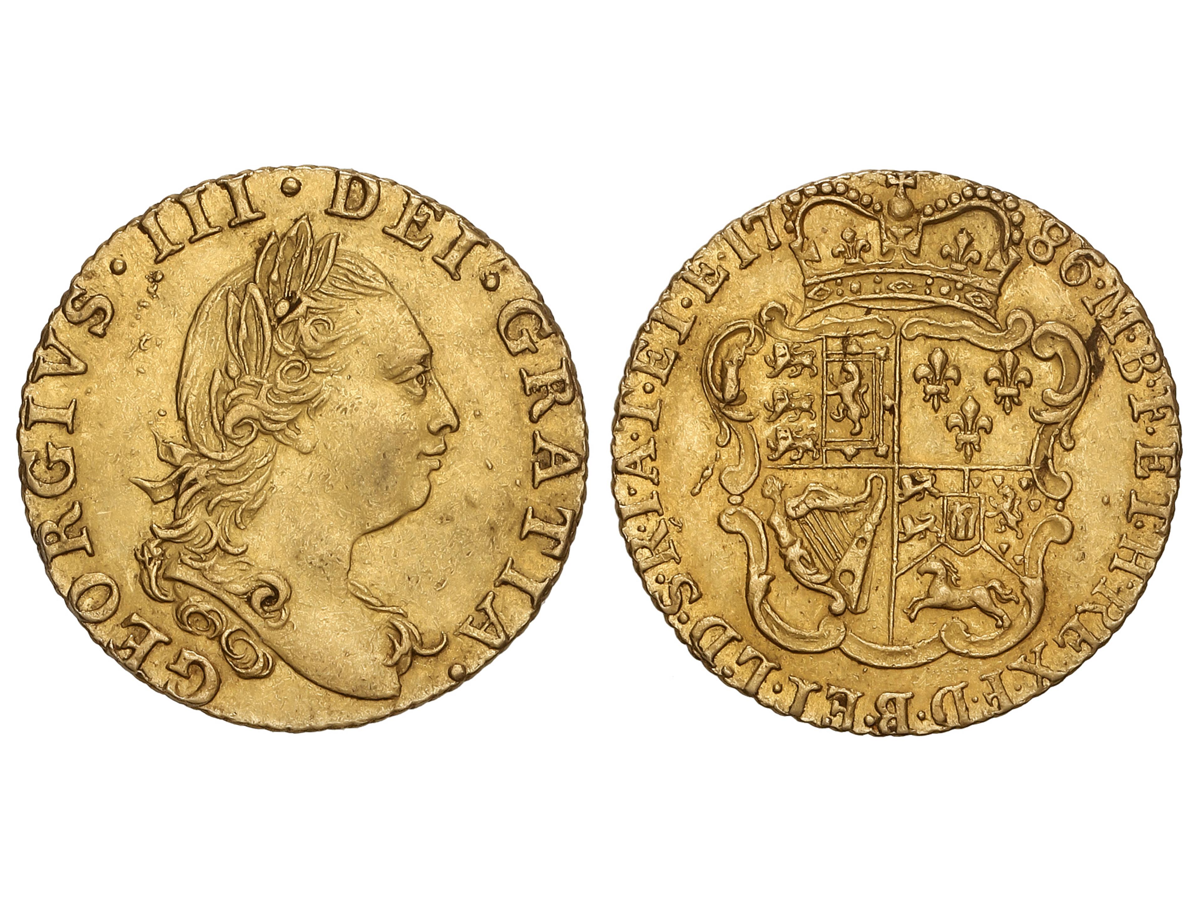 1/2 Guinea. 1786. GEORGE III. 4,16 grs. AU (917). Fr-361; KM-605. EBC-. Ex Soler y Llach y Martí Hervera - 29 octubre 2013, n. 1051.