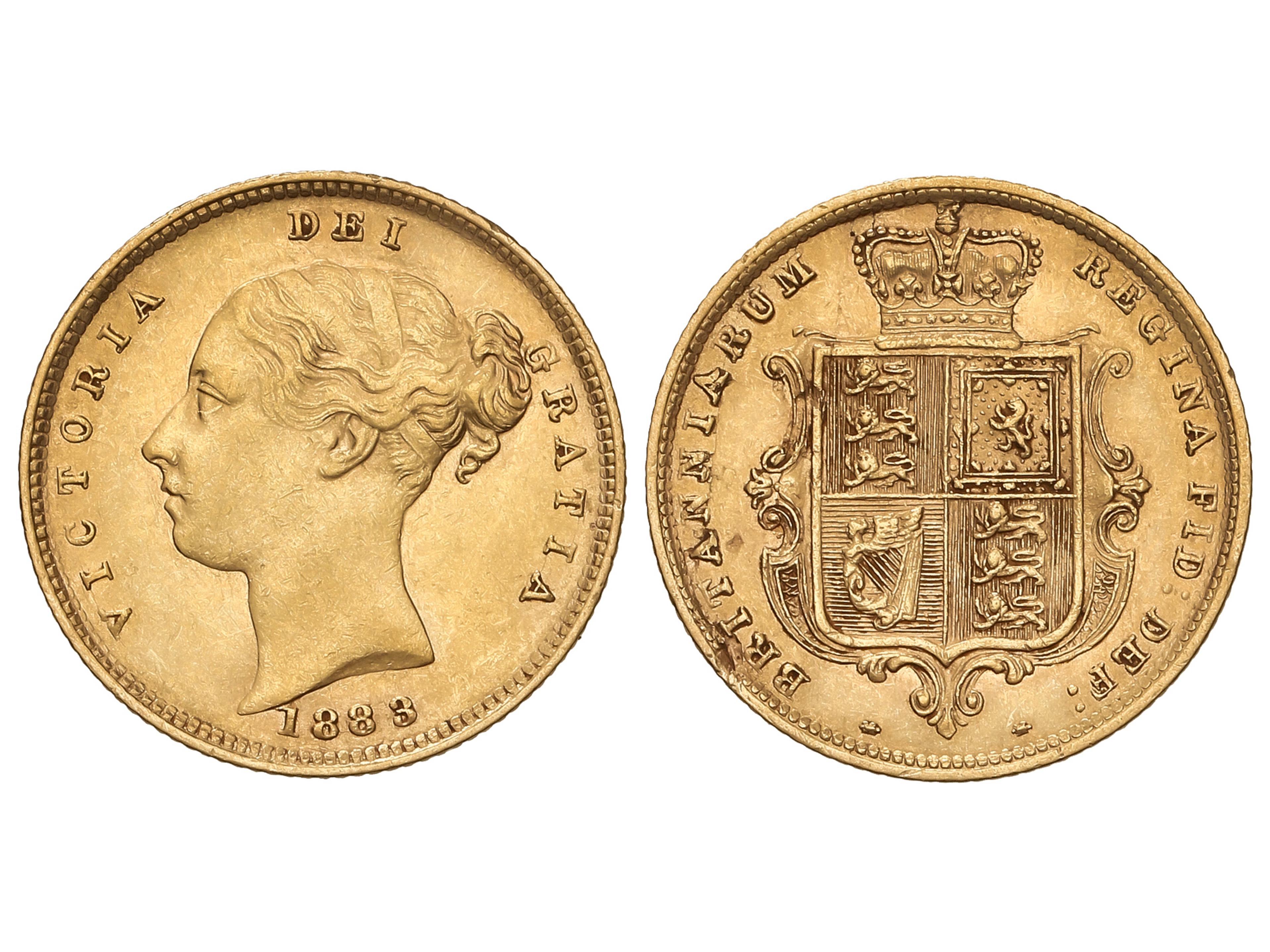 1/2 Sovereign. 1883. VICTORIA. Rev.: Escudo. 3,97 grs. AU (917). Fr-389e; KM-735, 1. EBC-. Ex Soler y Llach y Martí Hervera - 31 marzo 2009, n. 3268. (Image1)