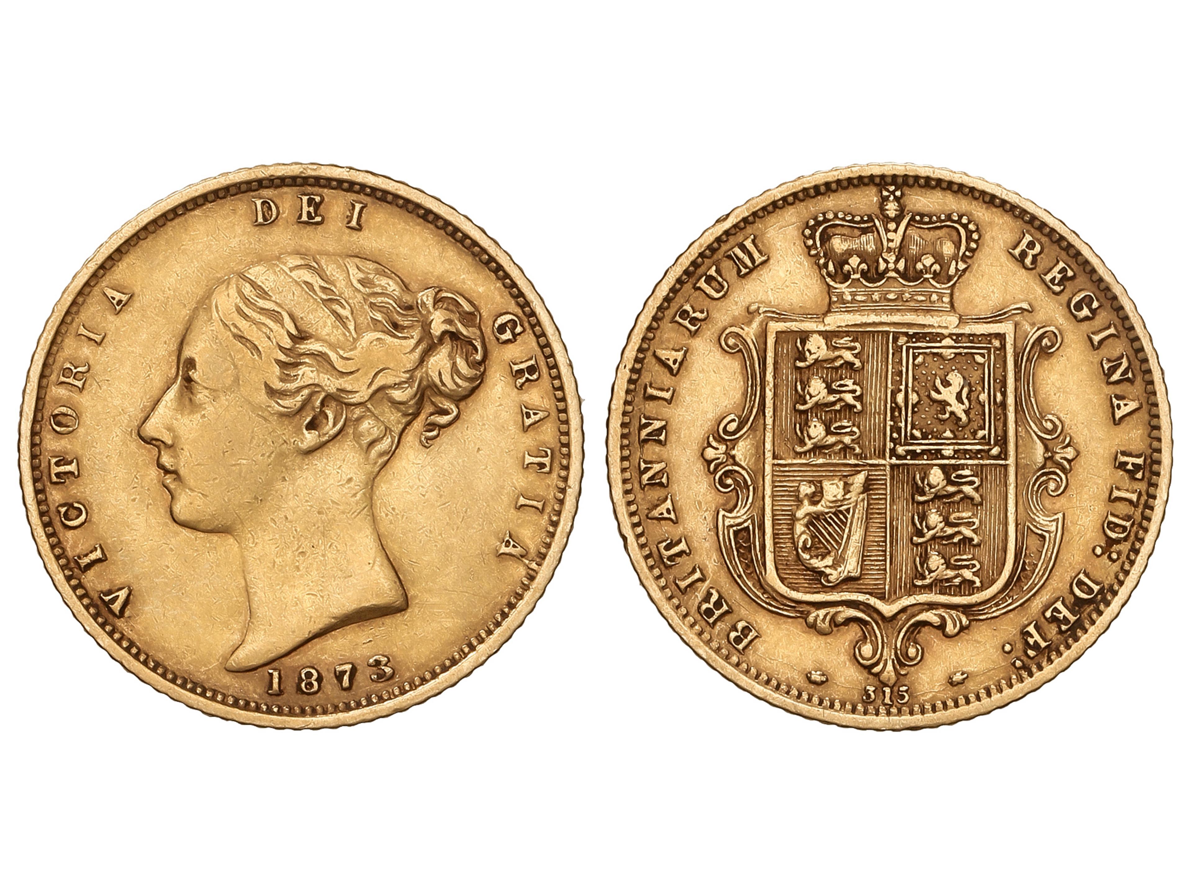 1/2 Sovereign. 1873. VICTORIA. Rev.: 315 bajo el escudo. 3,95 grs. AU (917). Fr-389f; km-735.2. MBC+. Ex ANE - 26 enero 2009, n. 219. (Image1)