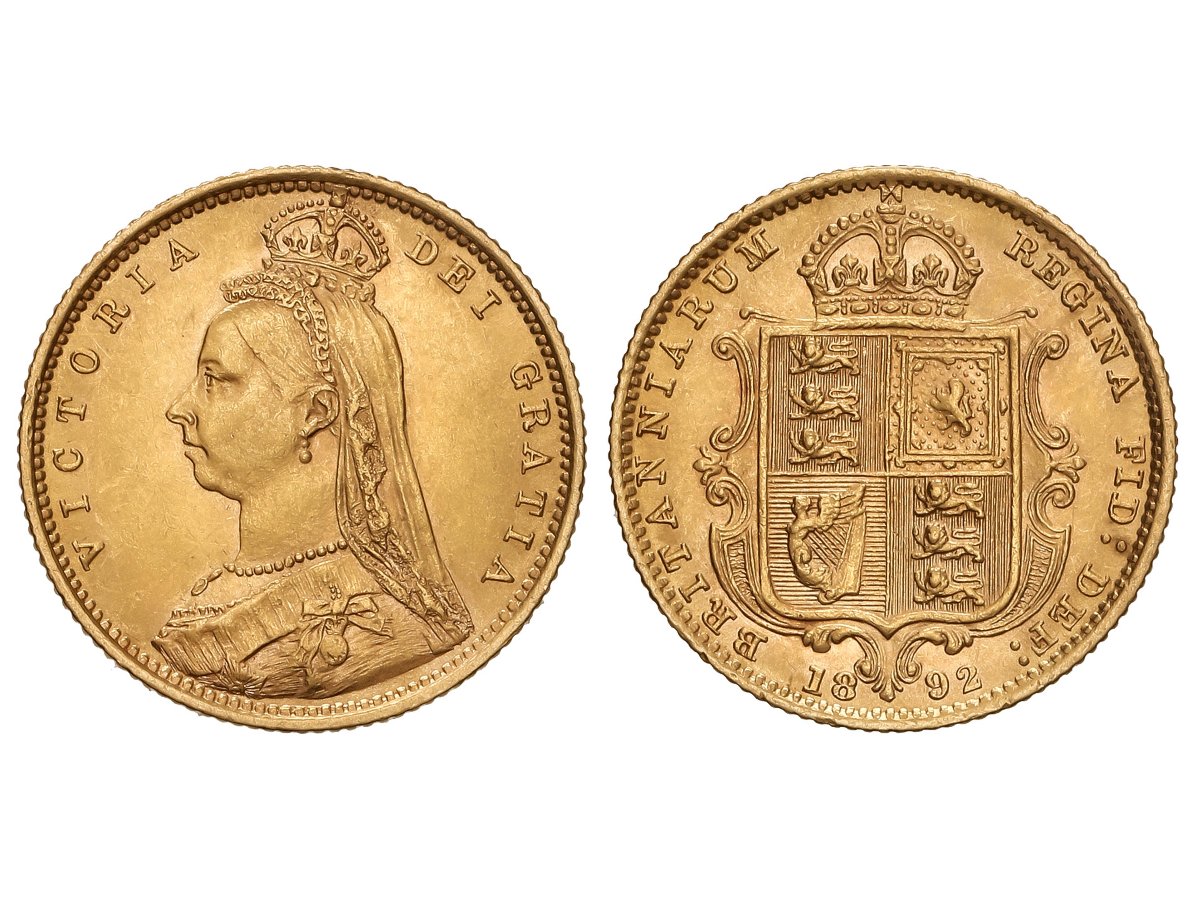 1/2 Sovereign. 1892. VICTORIA. Rev.: Escudo. 3,97 grs. AU (917). Fr-393; KM-766. MBC+/EBC-. Ex Martí Hervera - 29 noviembre 2007, n. 1066. (Image1)
