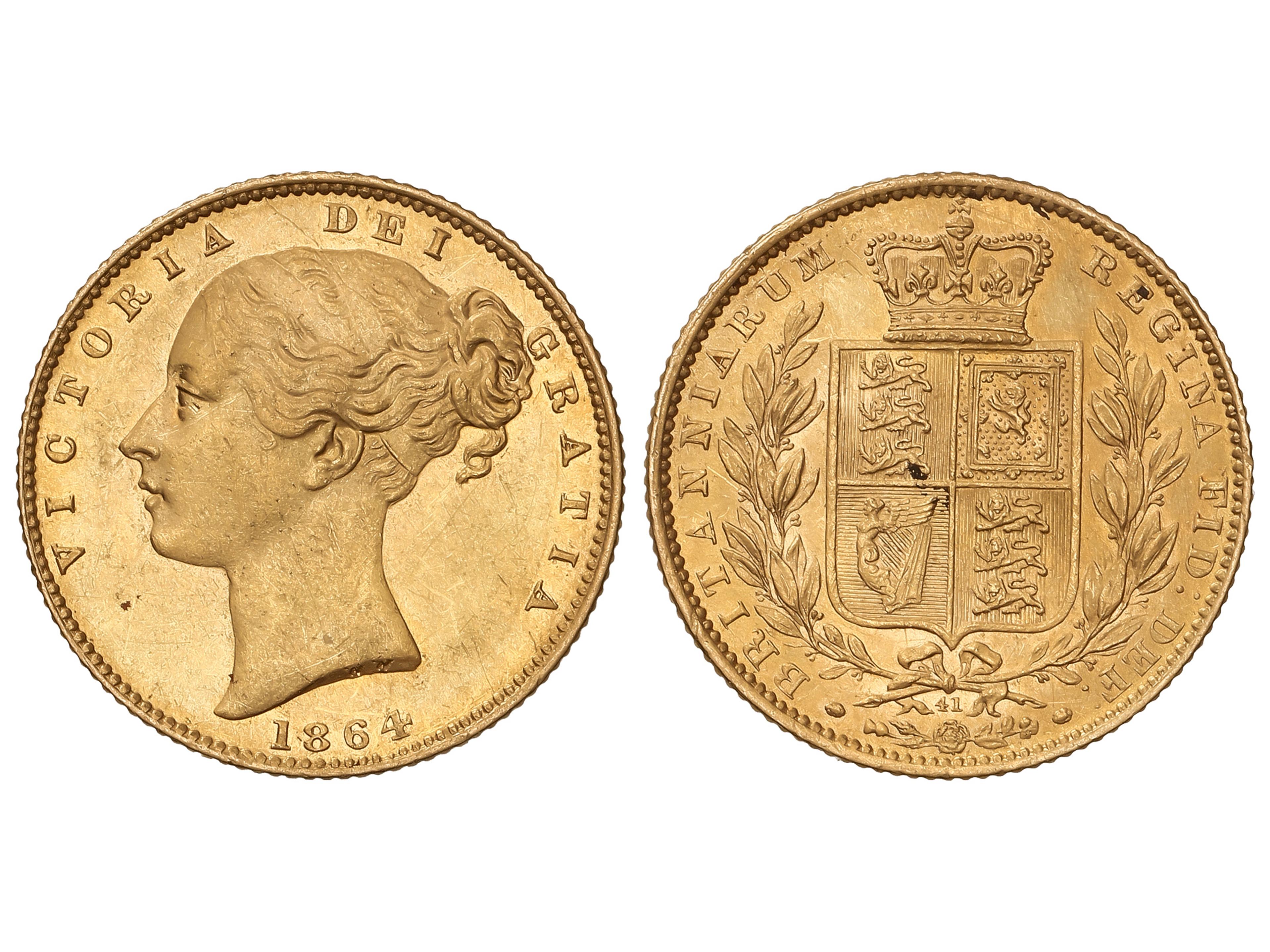 Sovereign. 1864. VICTORIA. 7,98 grs. AU (917). 41 bajo el escudo del reverso. Restos de brillo. Fr-387i; KM-736.2. EBC-/EBC.