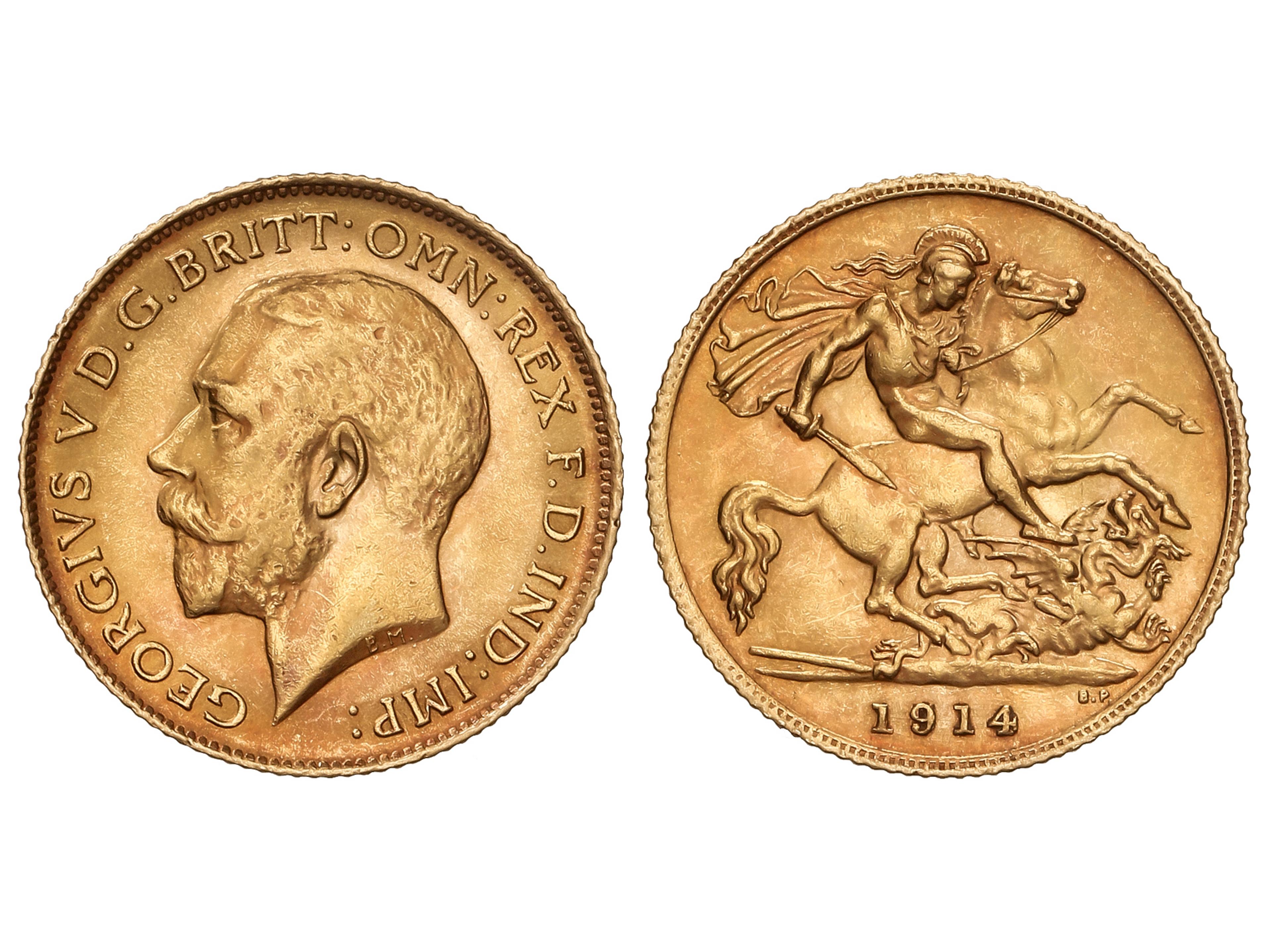 1/2 Sovereign. 1914. GEORGE V. 3,97 grs. AU (917). Fr-405; KM-819. EBC-. Ex Martí Hervera - 09 julio 2002, n. 3262.