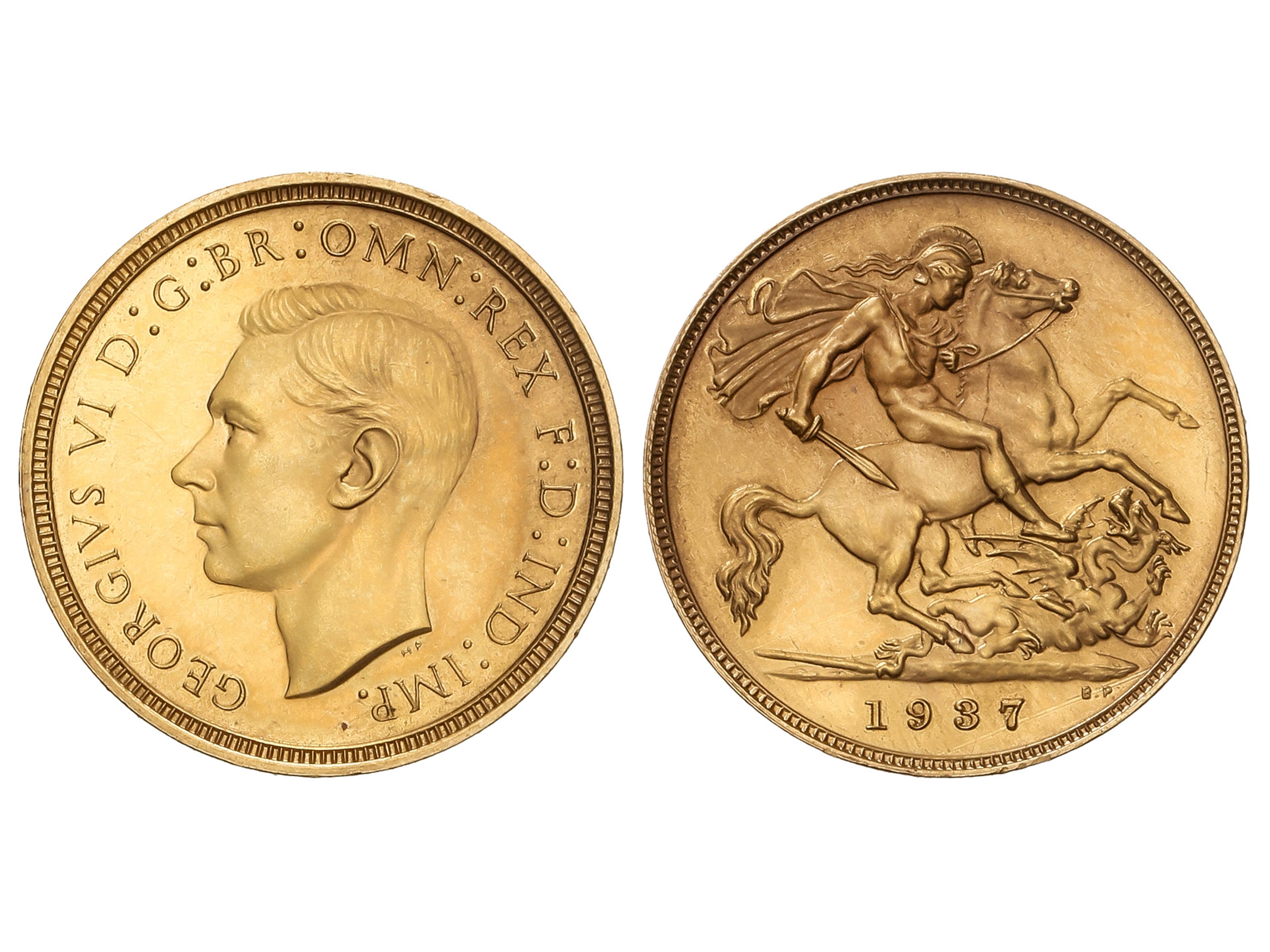 1/2 Sovereign. 1937. GEORGE VI. 4,00 grs. AU (917). (Levísimas rayitas en anverso). RARA. Fr-412; KM-858. PROOF. Ex Soler y Llach y Martí Hervera - 28 enero 2010, n. 1161. (Image1)