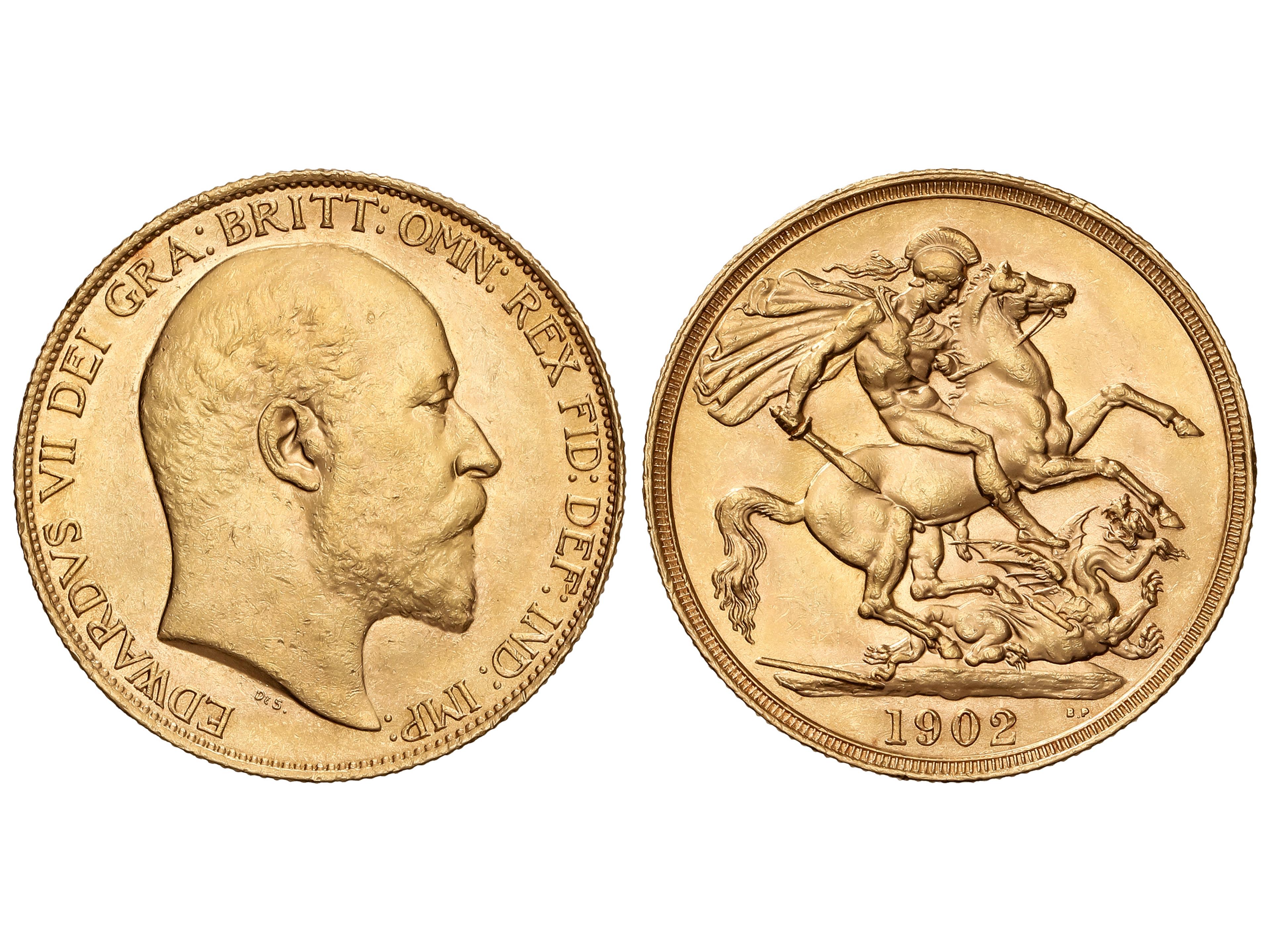 Pounds. 1902. EDWARD VII. 15,97 grs. AU (917). (Leves golpecitos). Fr-399; KM-806. EBC-/EBC. Ex Künker 186 - 10 marzo 2010, n. 7766.