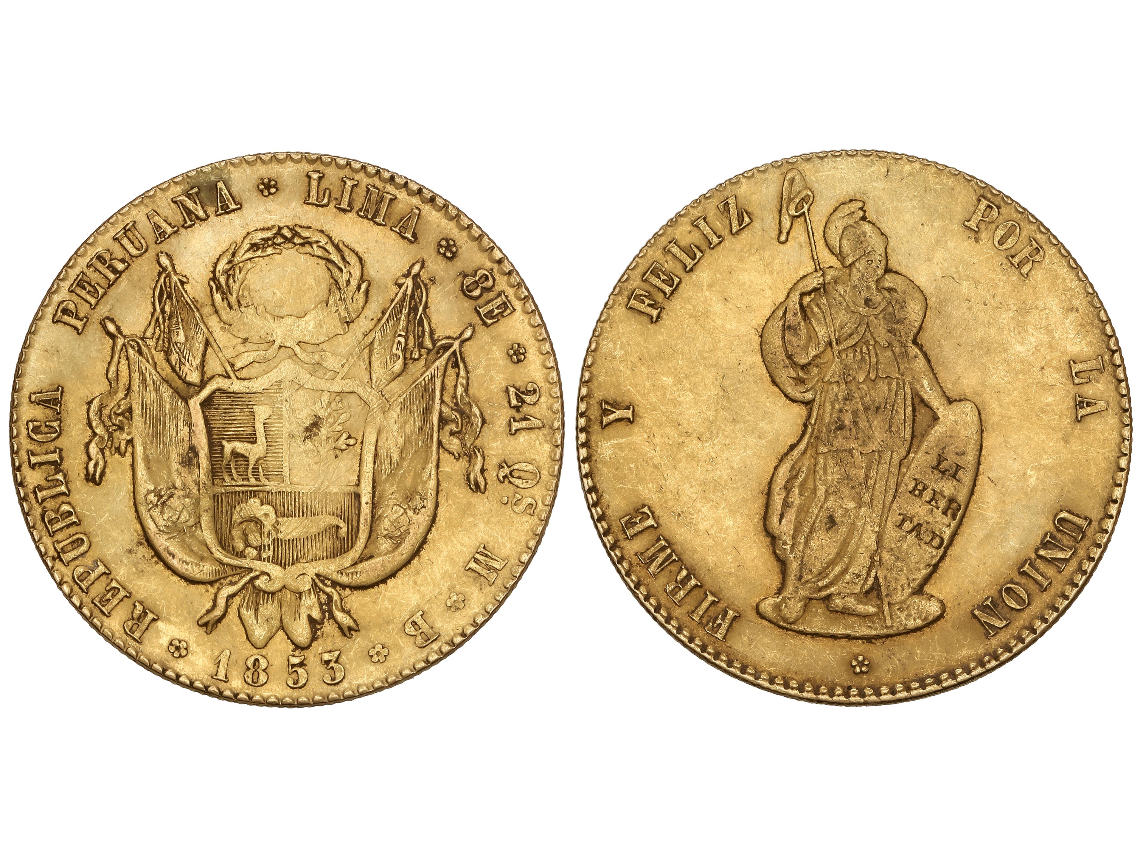 636 image8 Escudos. 1853. LIMA. M. B. 27,05 grs. (Acuñación floja, normal en esta pieza). KM-148.4; XC-2099. MBC-. (Image1)