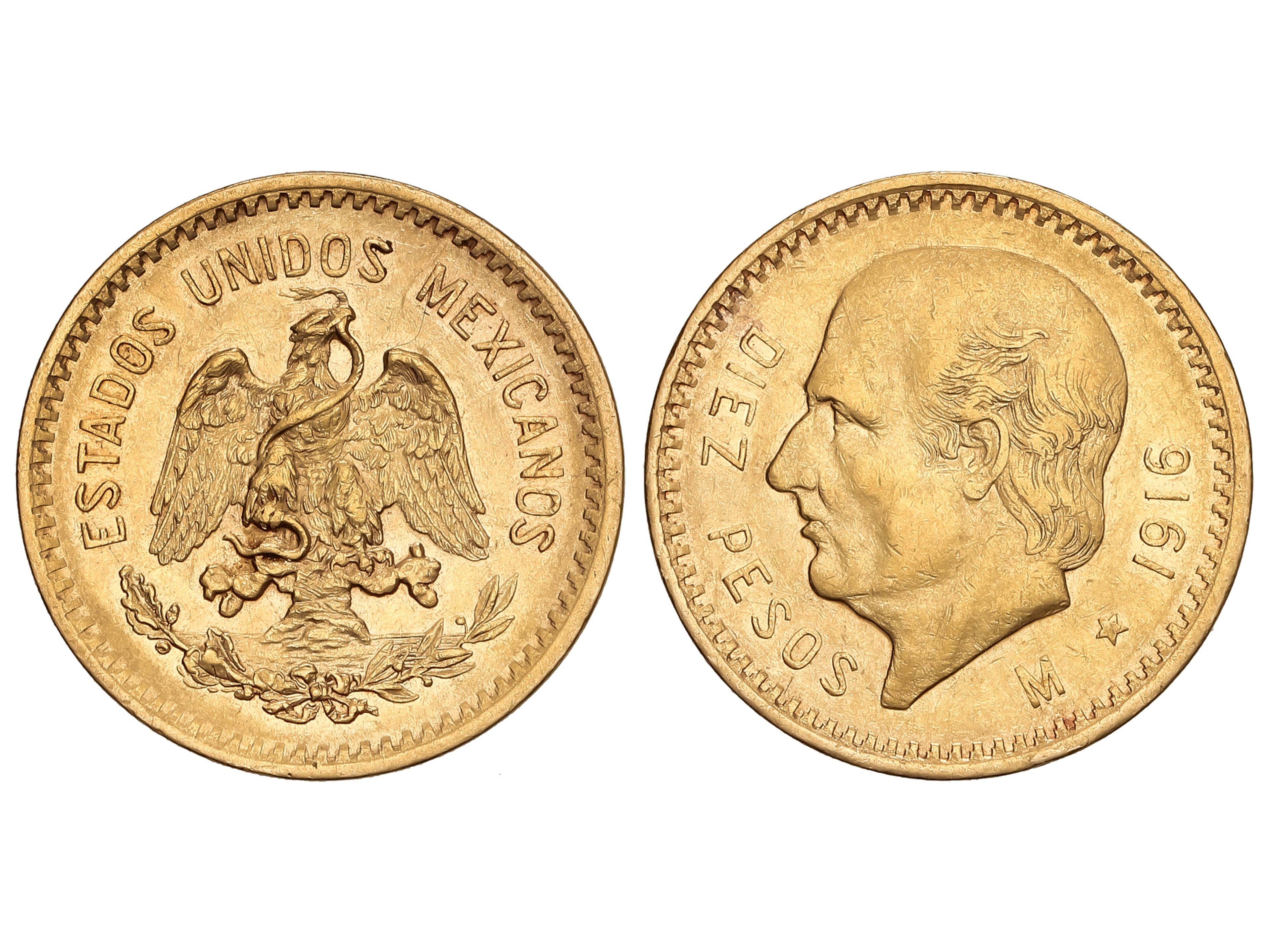 627 image10 Pesos. 1916. M. 8,30 grs. AU (900). El segundo año más escaso de toda la serie. (Pequeños golpecitos). Fr-166; KM-473. EBC-/MBC+. (Image1)