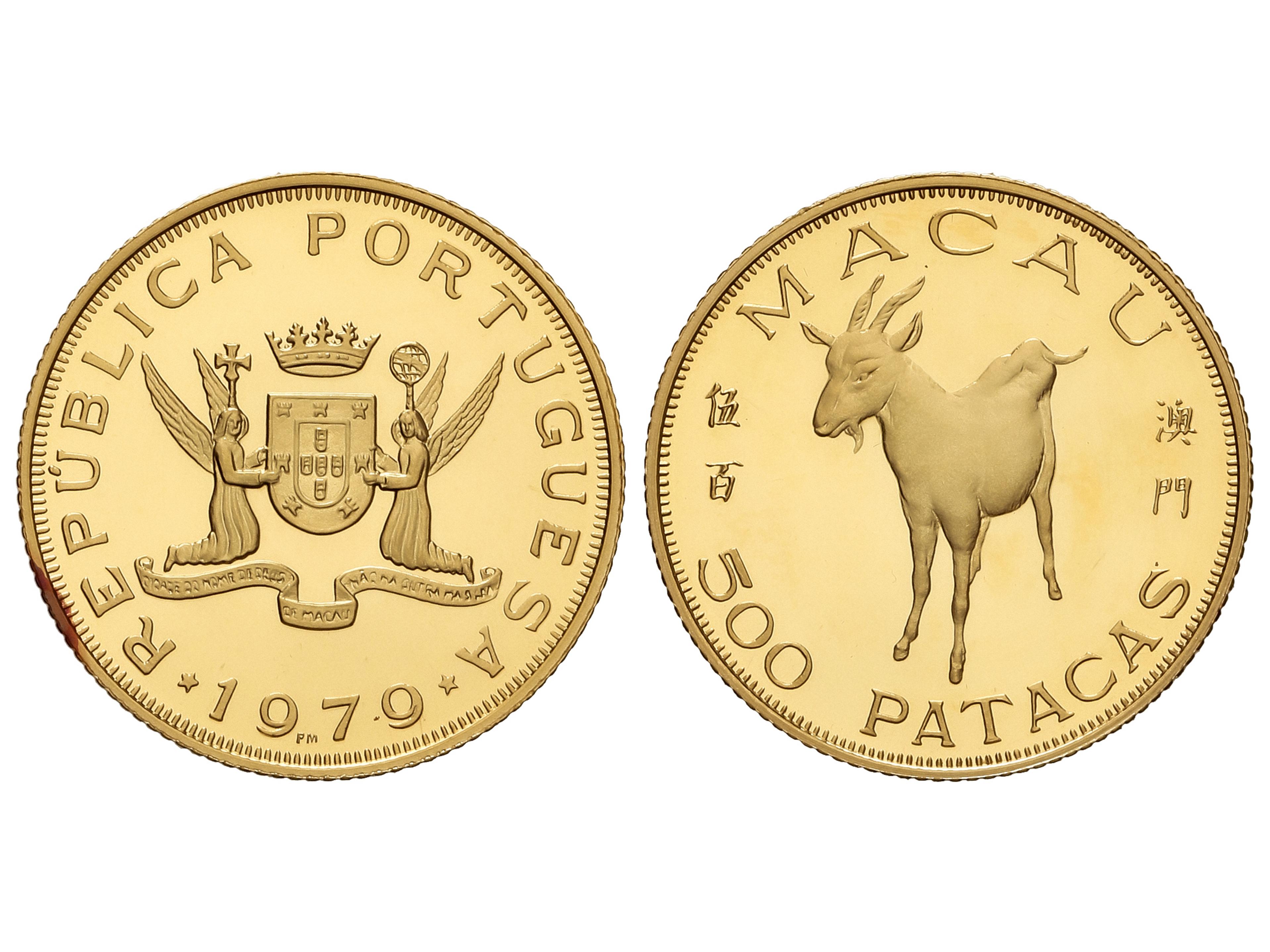 625 image500 Patacas. 1979. 8,01 grs. AU (917). Año de la Cabra. (Leve manchita en canto e ínfimas rayitas). 88. Fr-B1; KM-15. Tirada: 5.500 piezas. PROOF. (Image1)