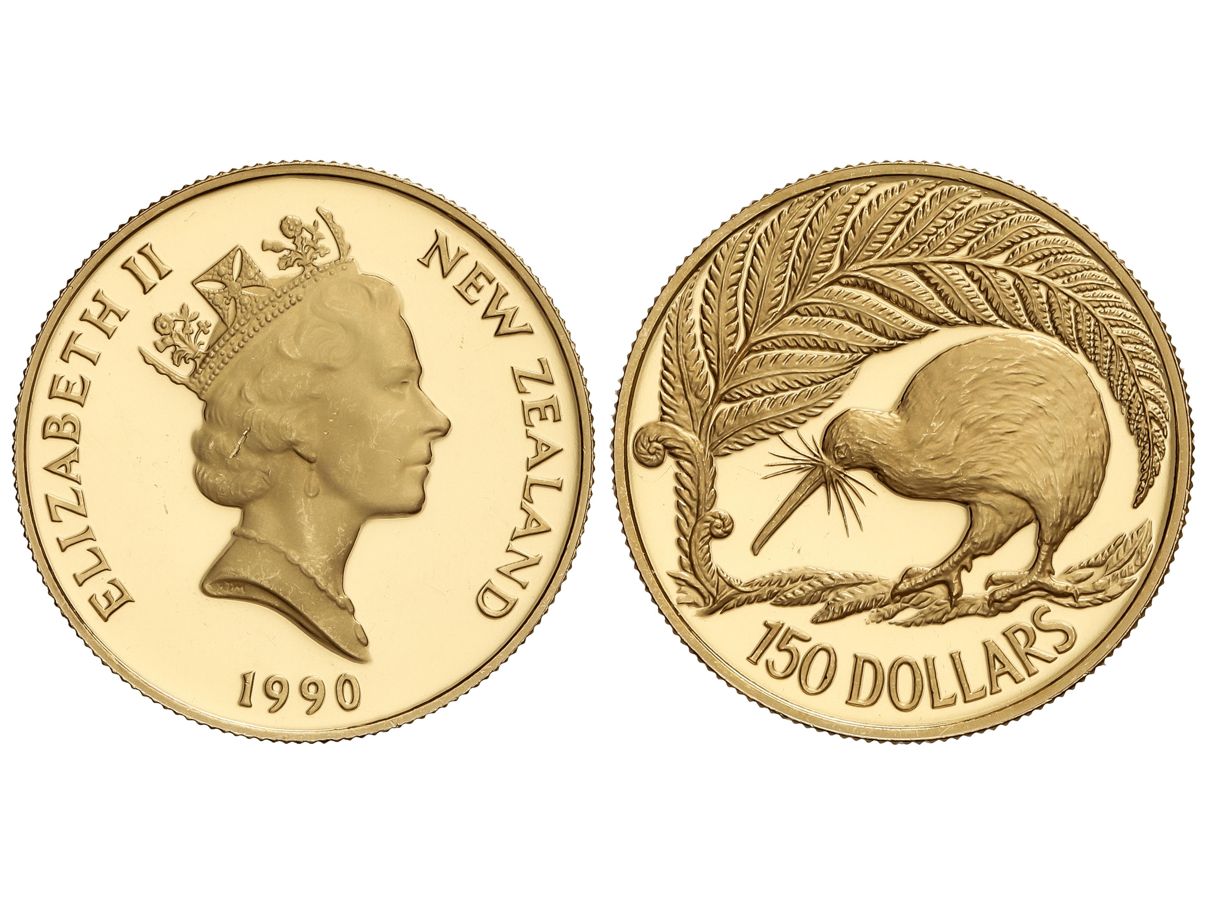 632 image150 Dollars. 1990. ELIZABETH II. 16,92 grs. AU (917). Kiwi. (Ínfimas marquitas). Fr-1; KM-77. PROOF. (Image1)