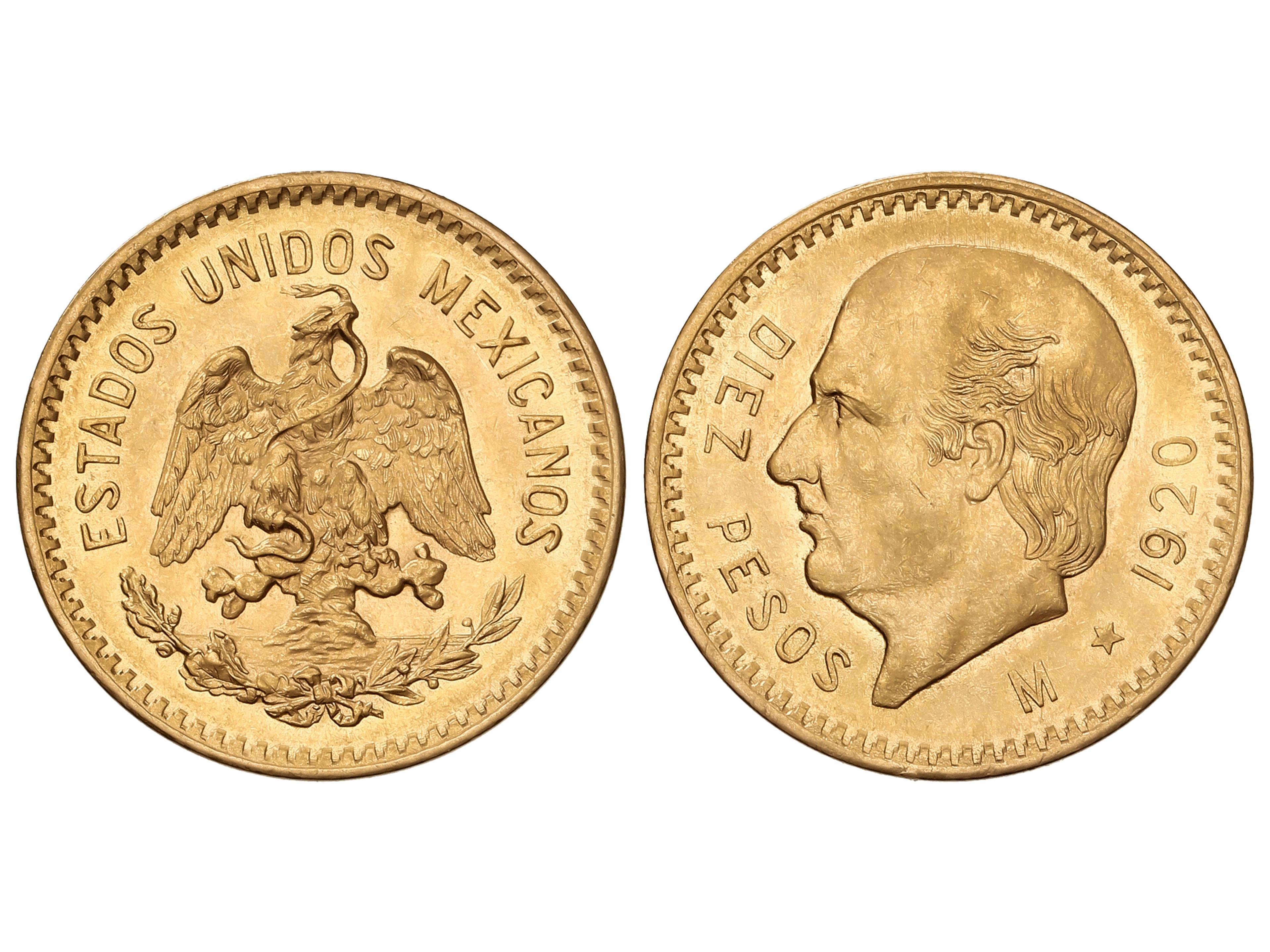 628 image10 Pesos. 1920. M. 8,34 grs. AU (900). El año más escaso de toda la serie. (Leves golpecitos). Fr-166; KM-473. EBC+/EBC. (Image1)