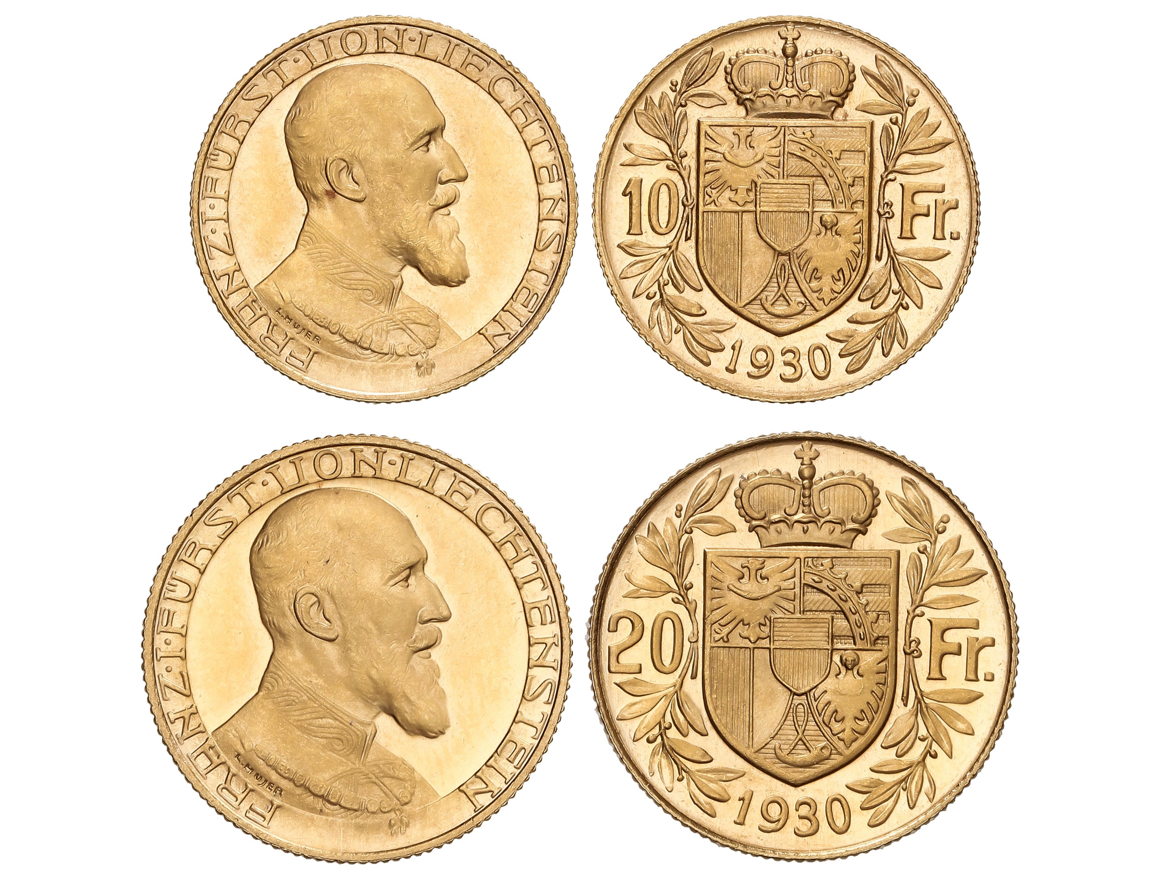 624 imageLote 2 monedas 10 y 20 Franken. 1930. FRANCIS I. 3,20 y 6,45 grs. AU (900). (Ínfimas rayitas en anverso). MUY ESCASAS Y MÁS JUNTAS. Fr-15, 16; Y-11, 12. Tirada: 2.500 piezas. PROOF. (Image1)