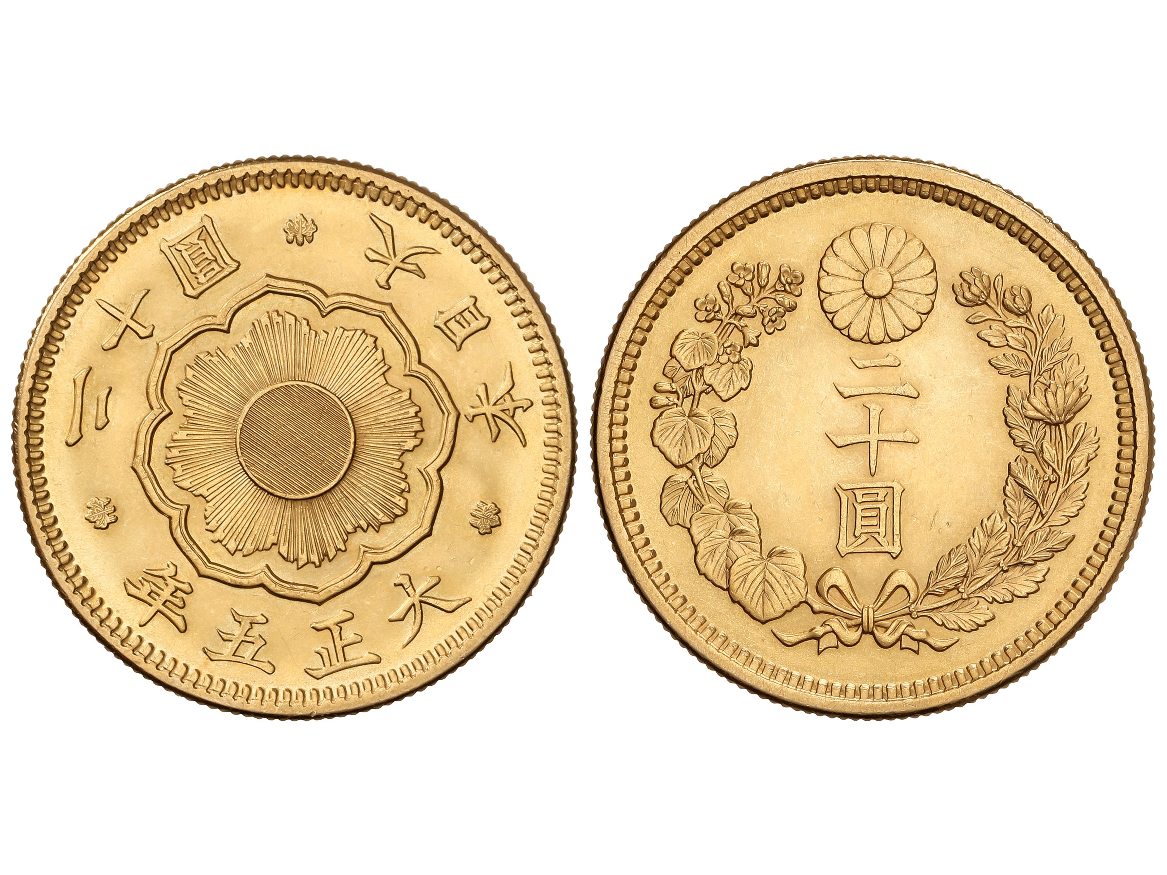621 image20 Yen. Año 5 (1916). YOSHIHITO (Taisho). 16,64 grs. AU (900). (Ínfimas marquitas). Fr-53; KM-40.2. EBC+. Ex Hess Divo 326 - 28 mayo 2014, n. 623. (Image1)