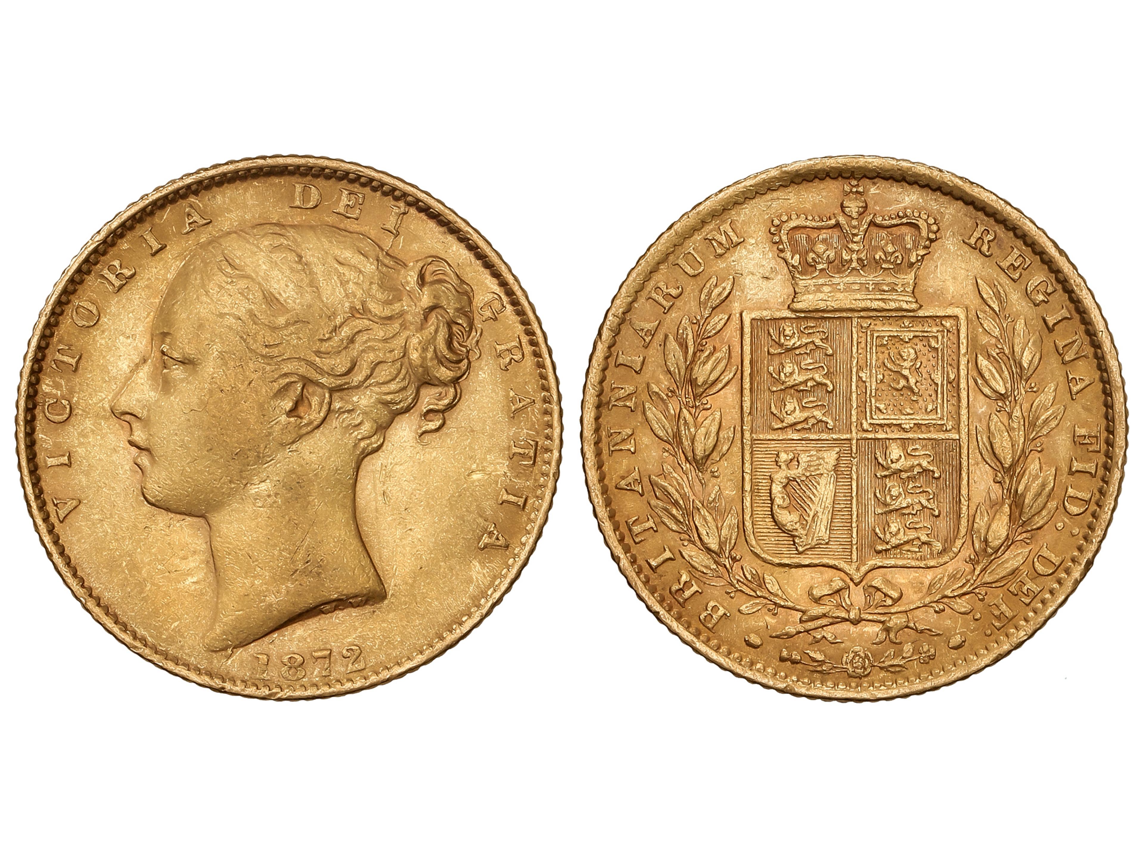 1031 imageSovereign. 1872. VICTORIA. 7,93 grs. AU (917). Tipo escudo. Fr-387e; KM-736.1. MBC. (Image1)