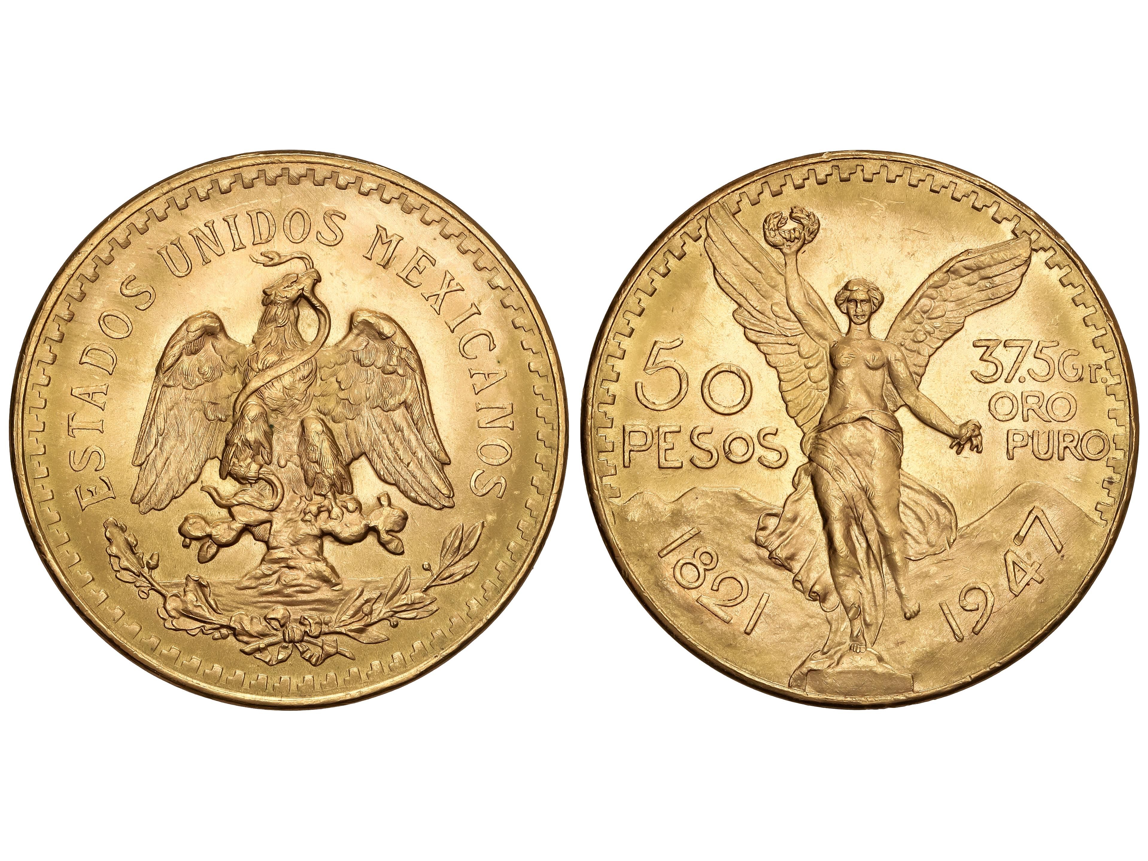 1039 image50 Pesos. 1947. 41,64 grs. AU (900). Centenario de la Independencia. Reacuñación oficial. (Restrike). Fr-172R; KM-481. SC. (Image1)