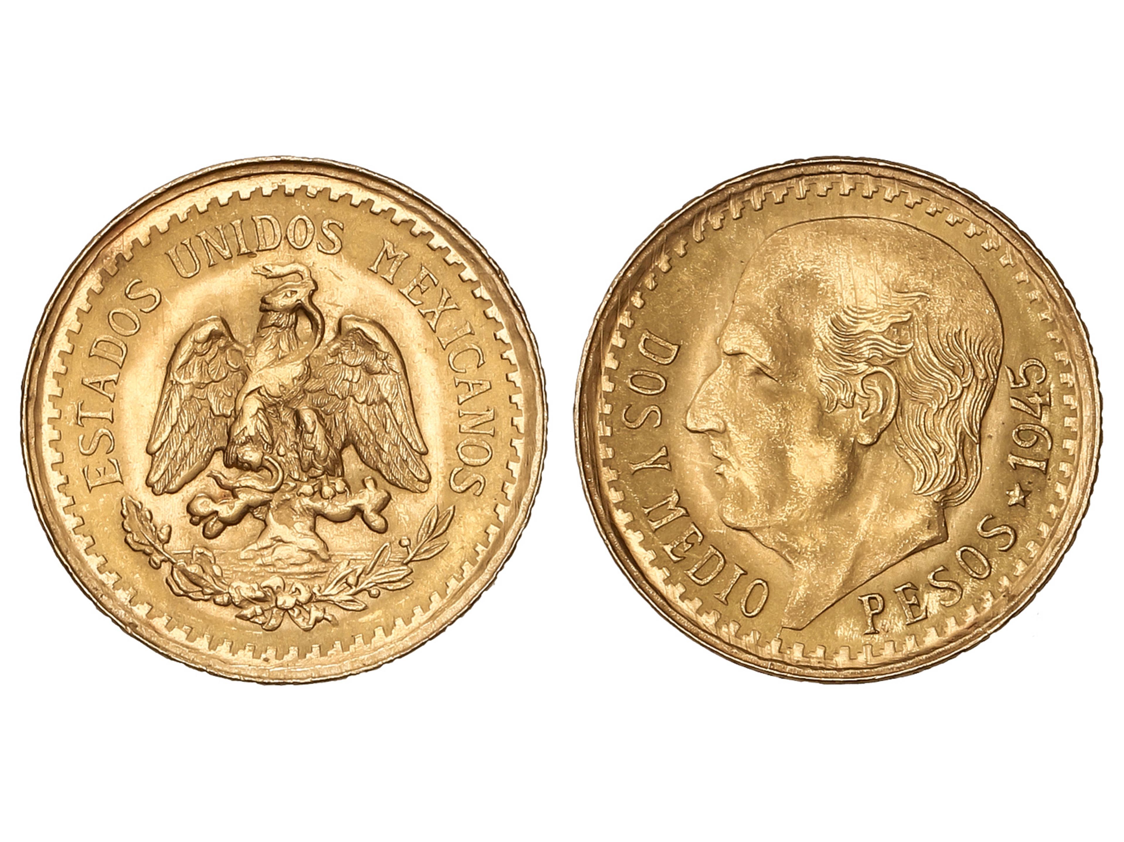 1036 image2-1/2 Pesos. 1945. 2,08 grs. AU (900). Miguel Hidalgo. Reacuñaciones oficiales (Restrike). KM-463. SC. (Image1)