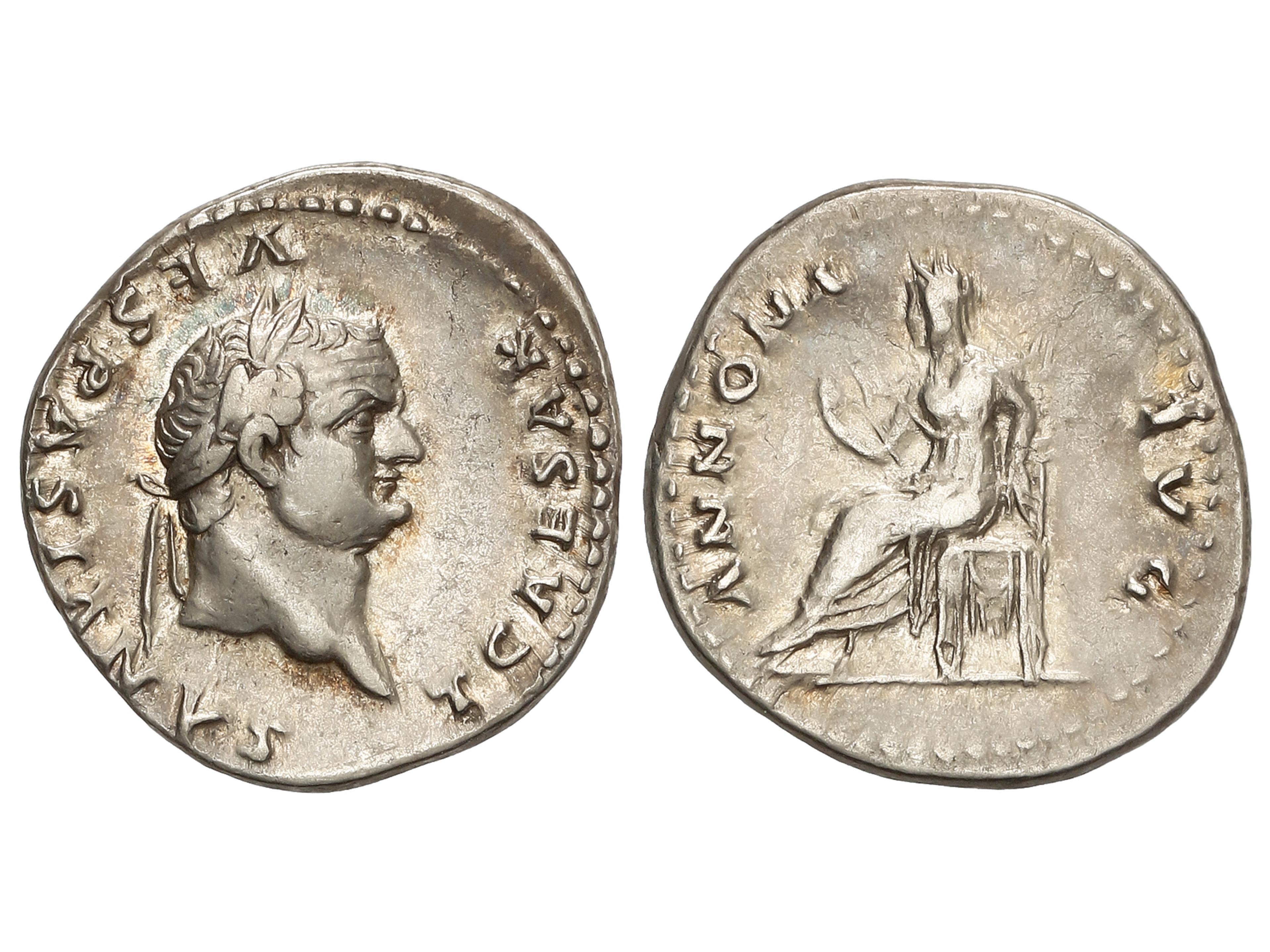 Denario. 77-79 d.C. TITO. Anv.: T. CAESAR VESPASIANVS. Cabeza laureada a derecha. Rev.: ANNONA AVG. Annona sentada a izquierda. 3,52 grs. AR. C-17; RIC-V218; BMC-V319. MBC. (Image1)