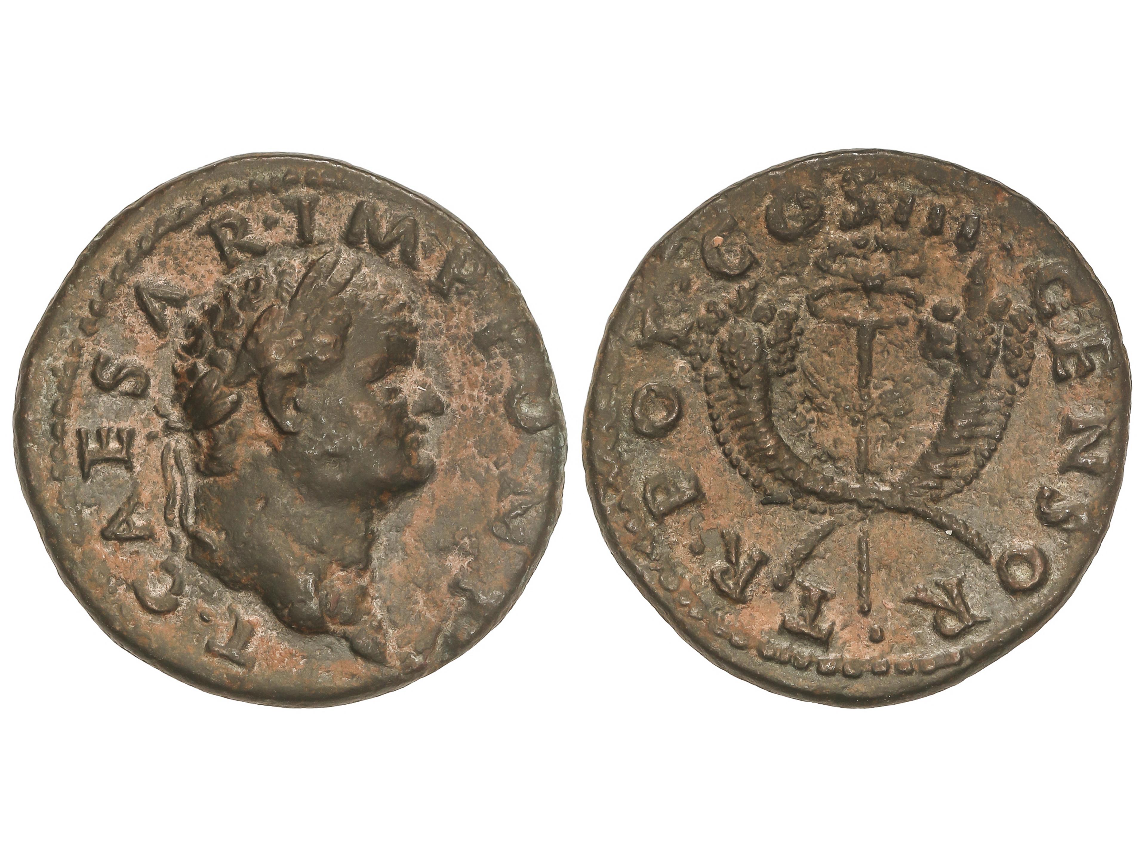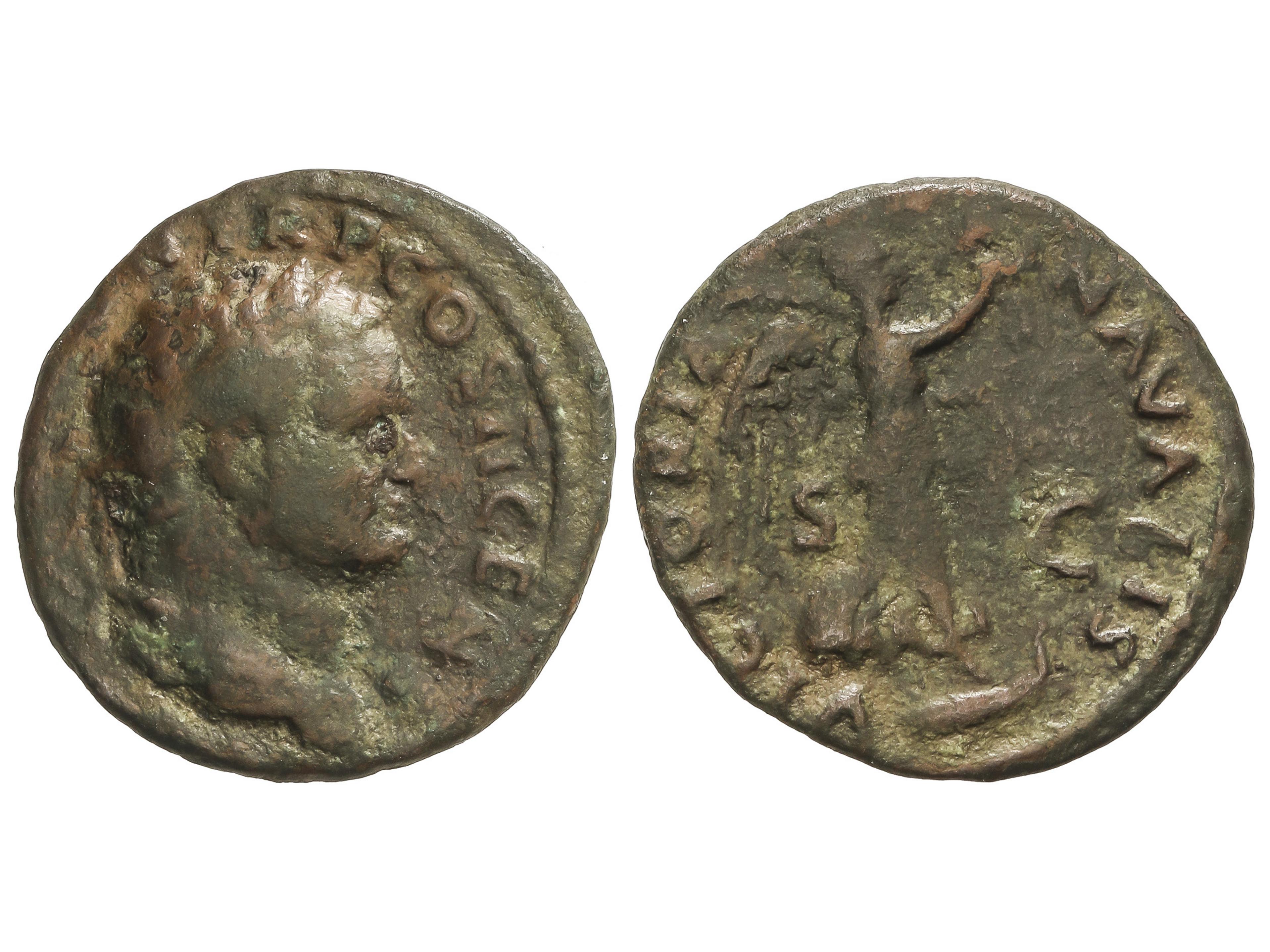 As. 73 d.C. TITO. Anv.: (T. CAES. IMP. PON.) TR. P. COS. II. CENS. Busto laureado a derecha. Rev.: VICTORIA NAVALIS SC. Victoria a derecha. 8,41 grs. AE. RIC II (Vespasiano)-644. BC+. (Image1)