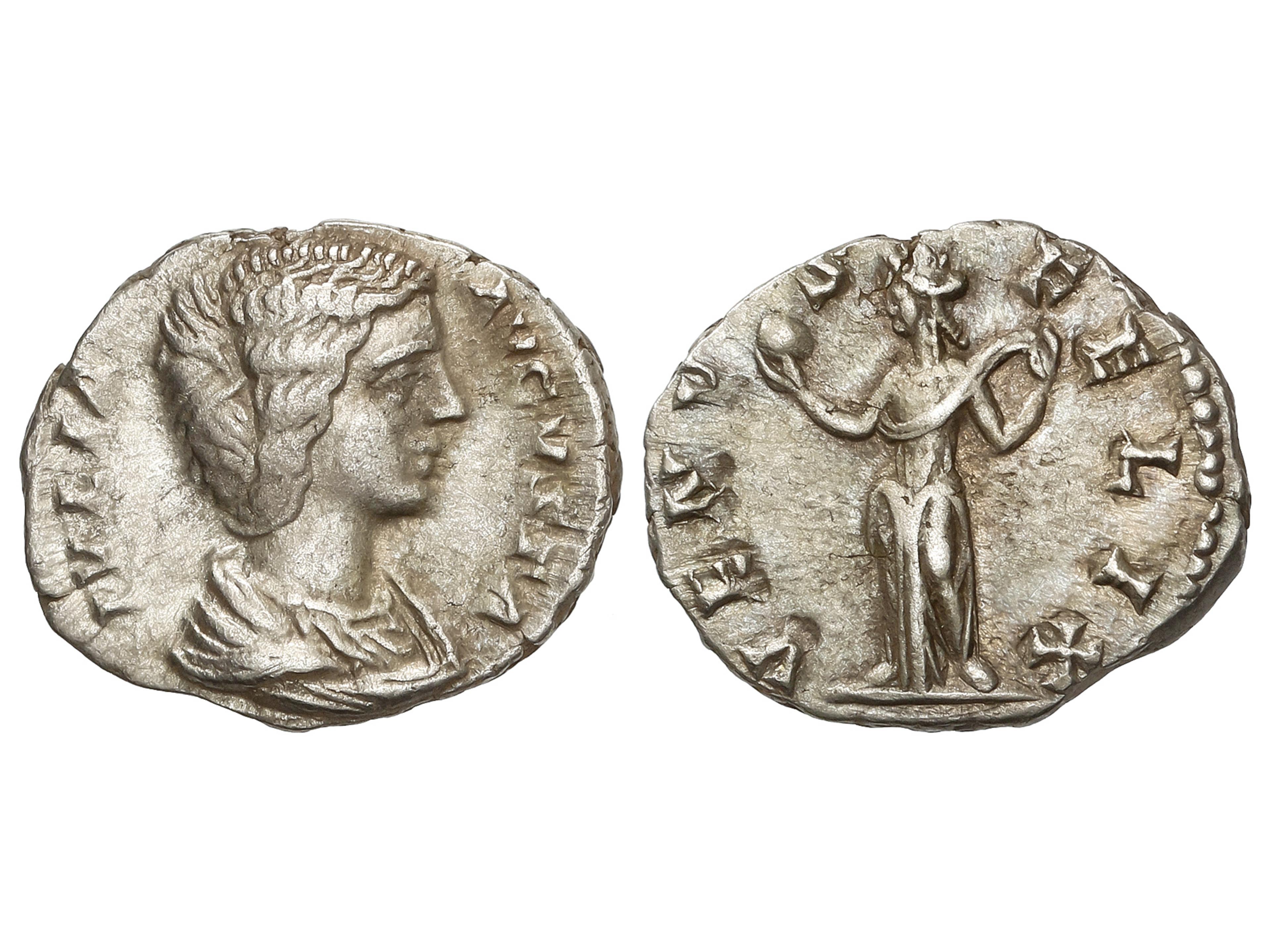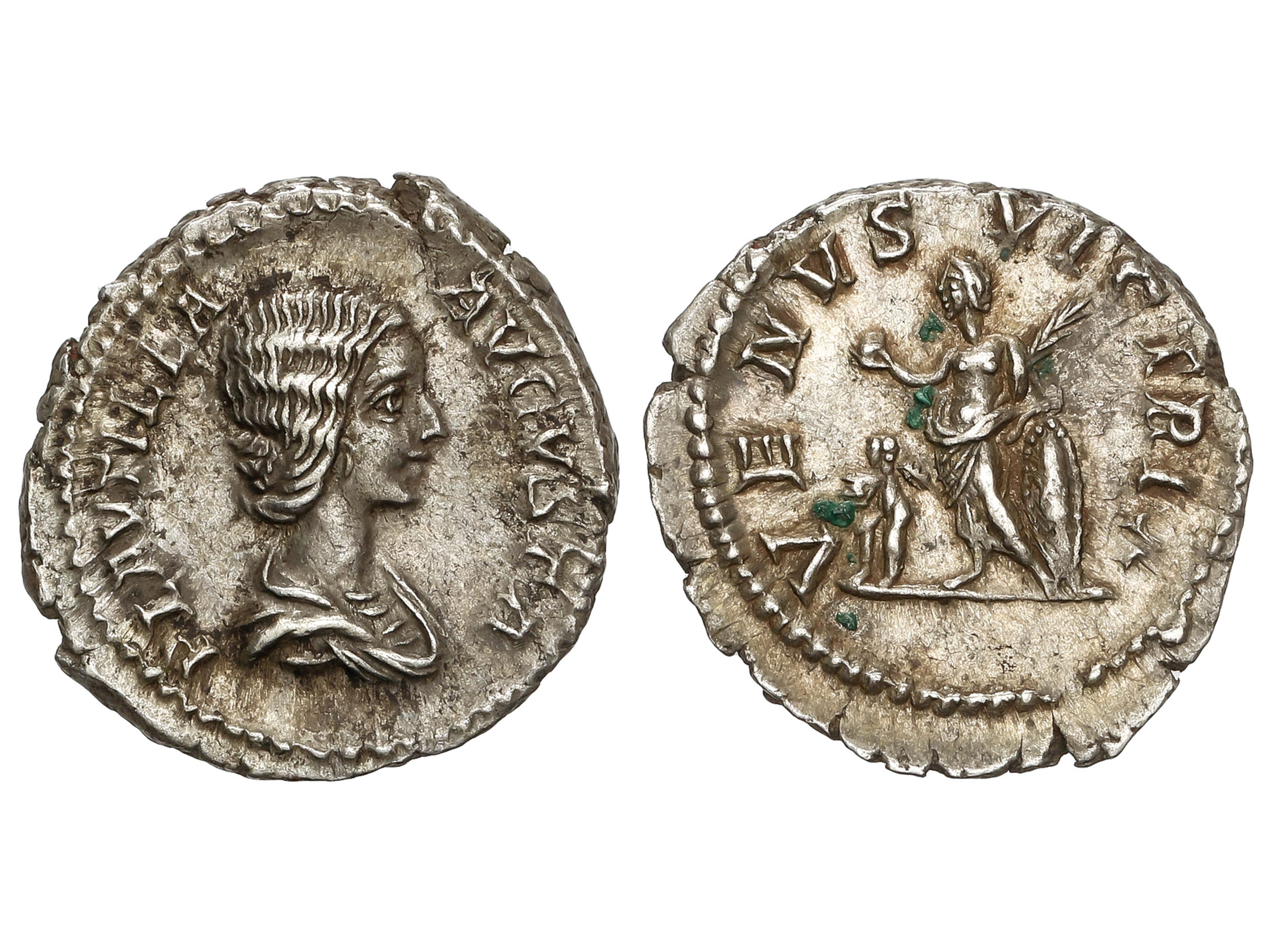 Denario. 202-212 d.C. PLAUTILLA. Anv.: PLAVTILLA AVGVSTA. Busto drapeado a derecha. Rev.: VENVS VICTRIX. Venus a izquierda, cupido delante. 3,10 grs. AR. C-25; RIC-369; BMC-429. EBC-. (Image1)