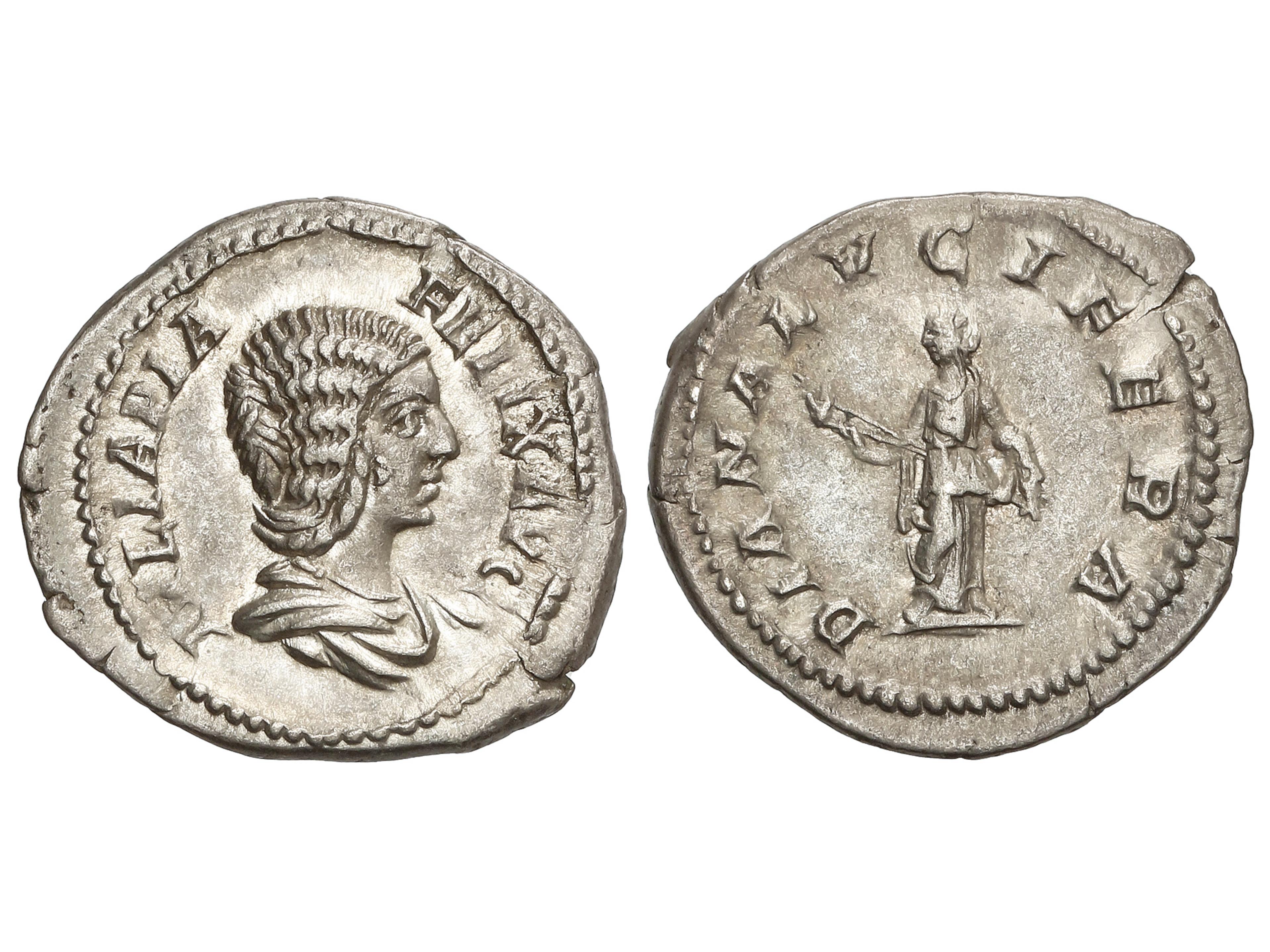 Denario. 196-211 d.C. JULIA DOMNA. Anv.: IVLIA PIA FELIX AVG. Busto drapeado a derecha. Rev.: DIANA LVCIFERA. Diana en pie con antorcha. 3,43 grs. AR. C-32; RIC-373 (Caracalla); BMC-1 (Caracalla). MBC+. (Image1)