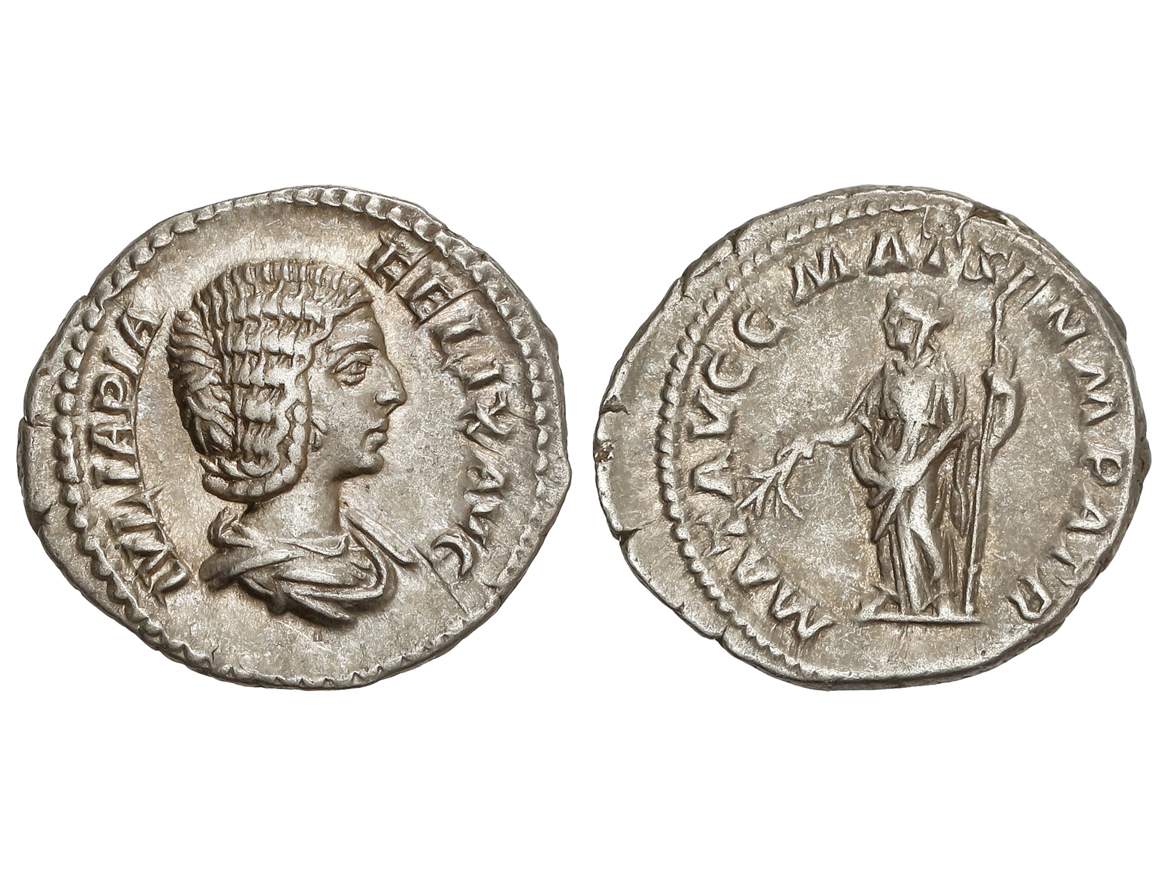 Denario. 211 d.C. JULIA DOMNA. Anv.: IVLIA PIA FELIX AVG. Busto drapeado a derecha. Rev.: MAT AVGG MAT SEN M PATR. Paz sosteniendo palma y cetro. 3,24 grs. AR. C-114; RIC-380 (Caracalla). MBC+. (Image1)