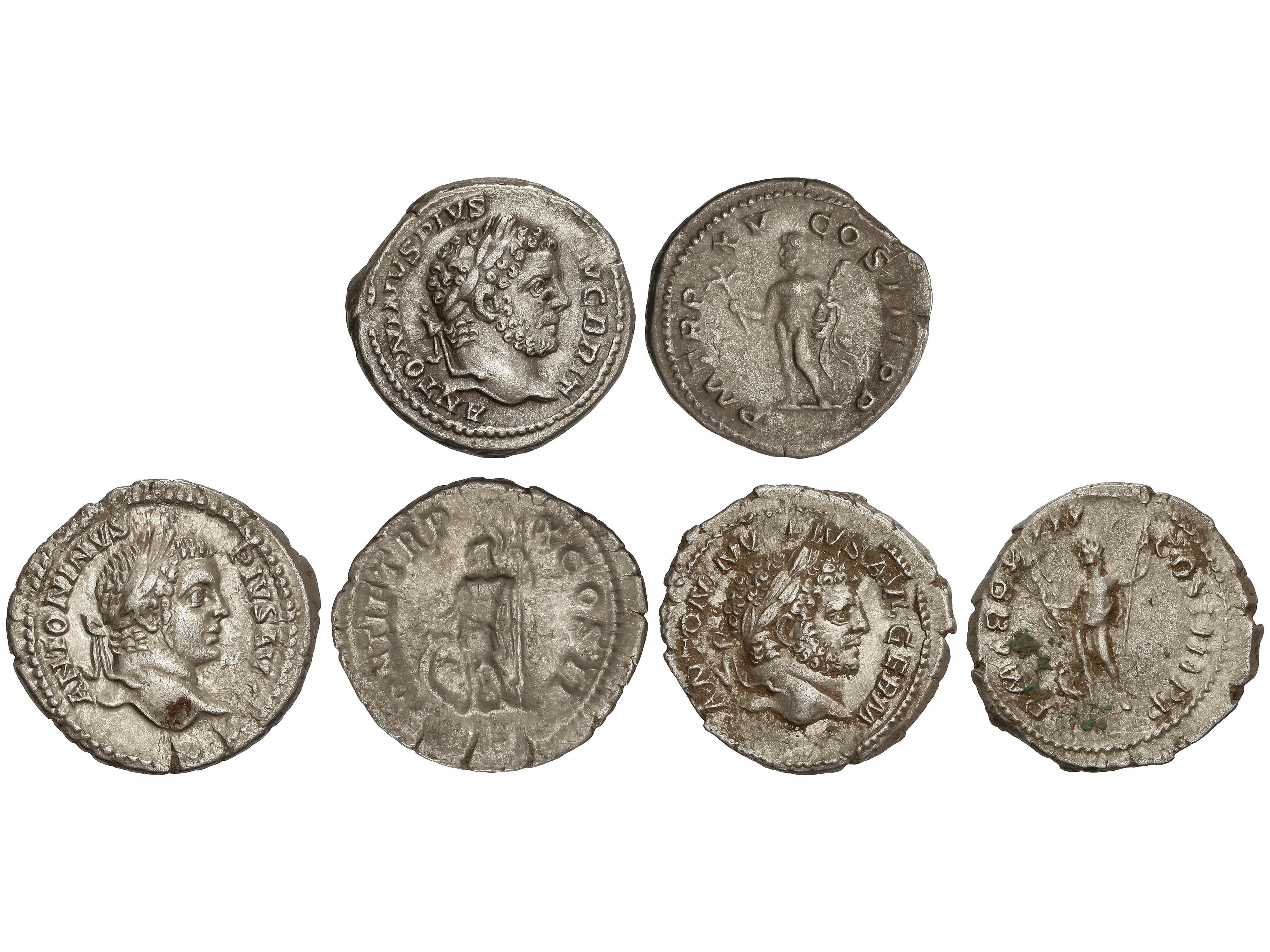 Lote 3 monedas Denario. 198-217 d.C. CARACALLA. AR. A EXAMINAR. C-196; 239, 446. MBC a MBC+. (Image1)