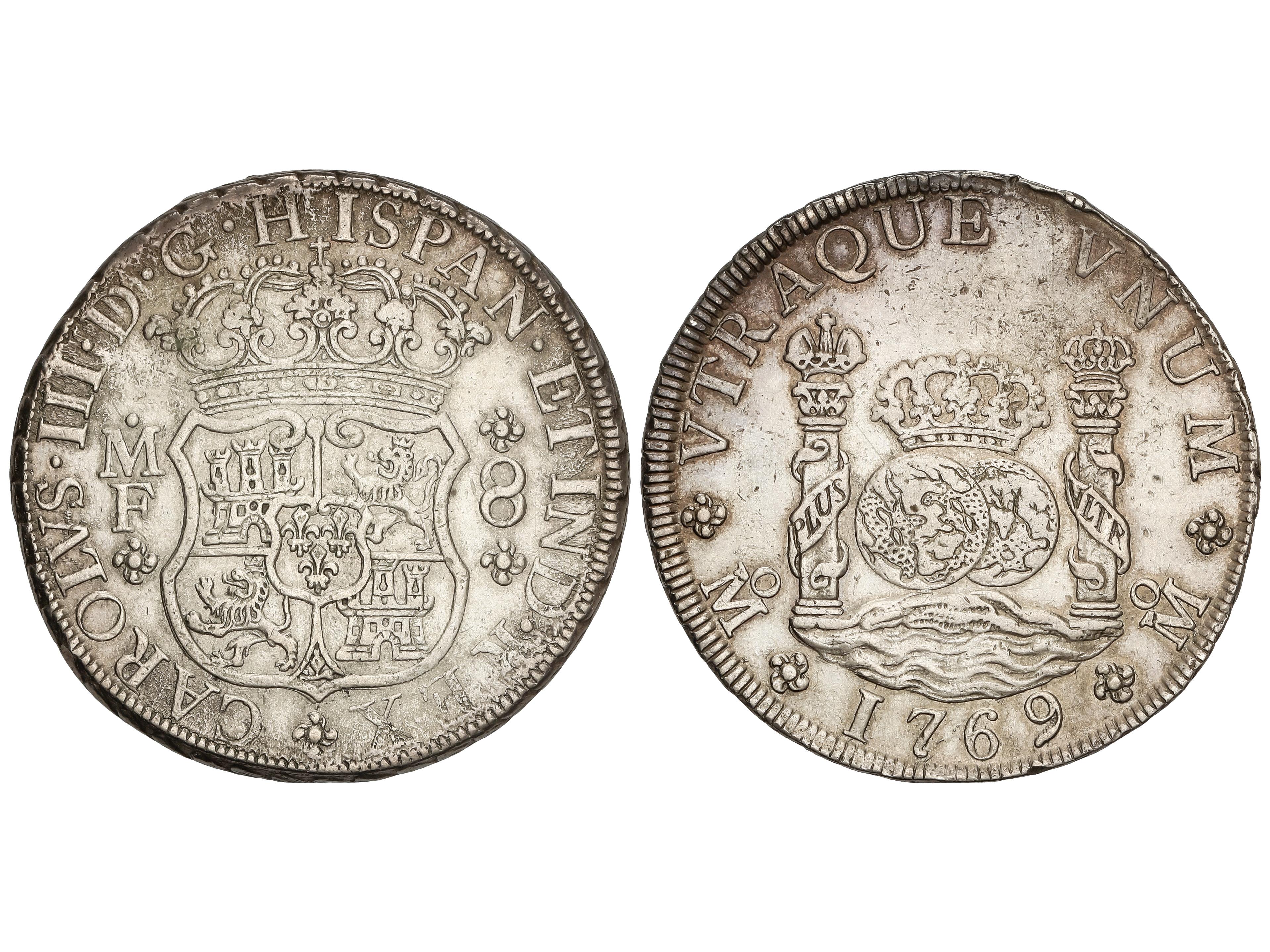 8 Reales. 1769. MÉXICO. M. F. 26,83 grs. Columnario. Pátina. AC-1095. MBC+. (Image1)