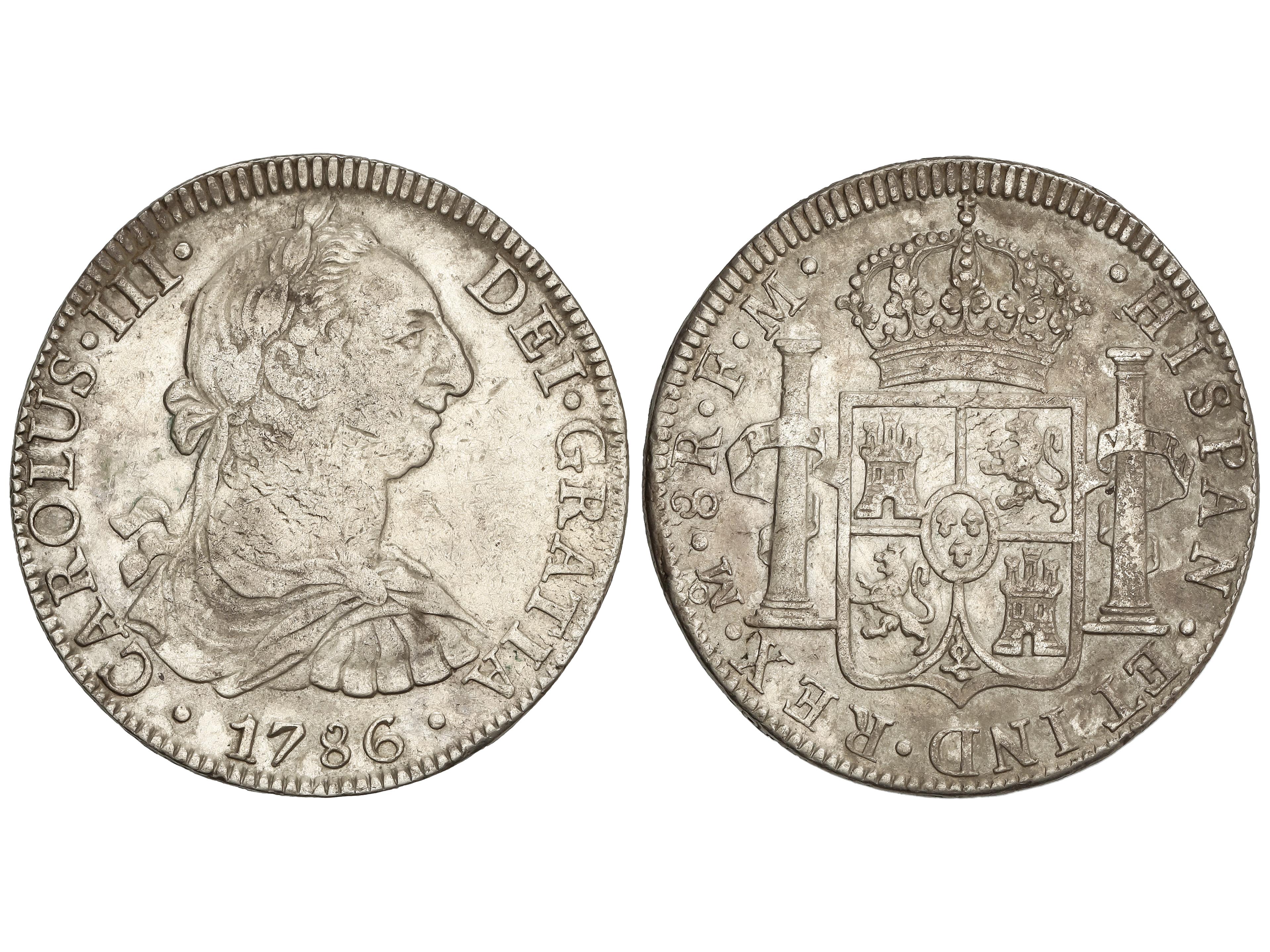 8 Reales. 1786. MÉXICO. F.M. 26,83 grs. (Rayitas en anverso). AC-1129. MBC. (Image1)