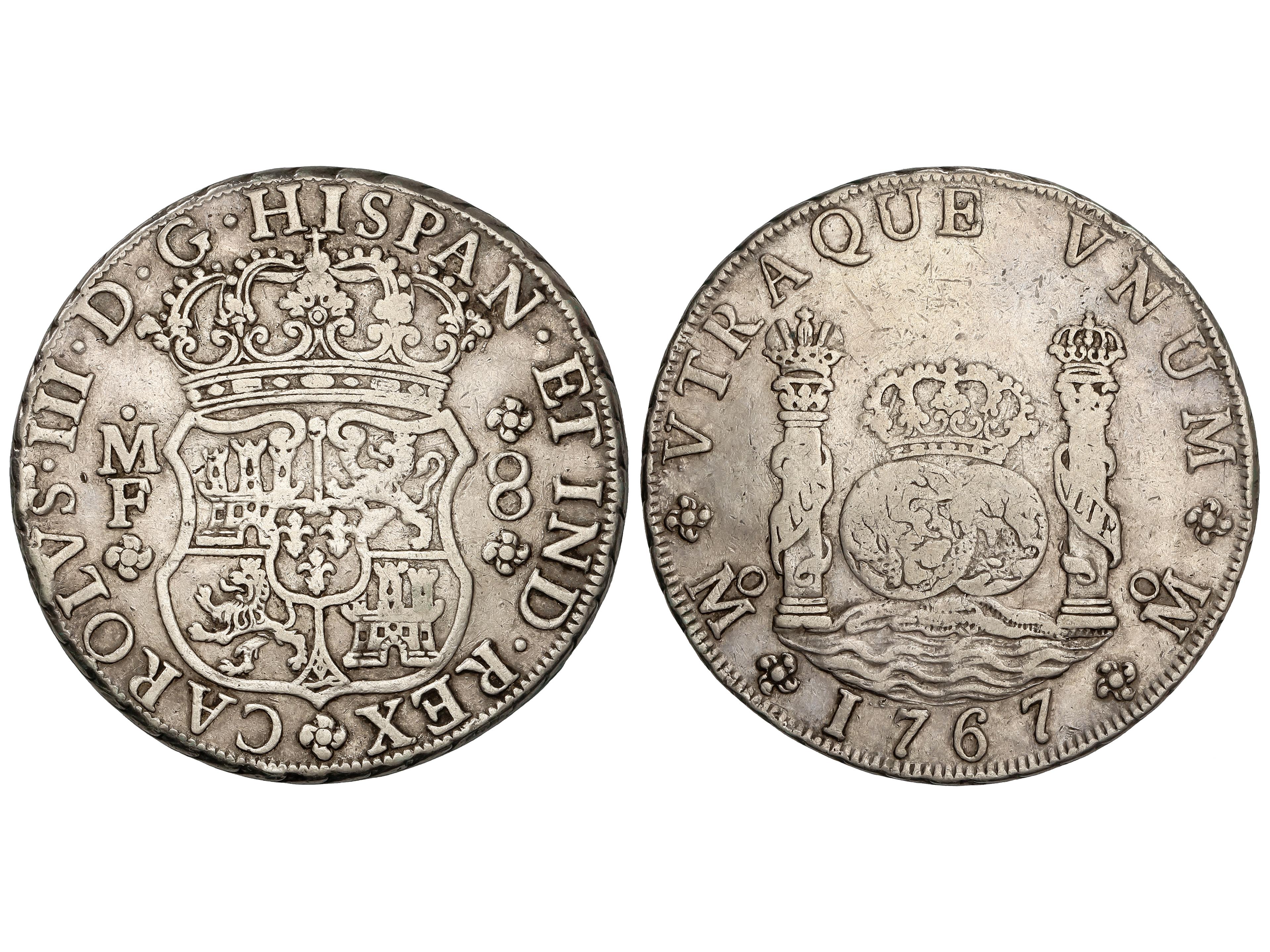 8 Reales. 1767. MÉXICO. M.F. 26,76 grs. Columnario. (Pequeños golpecitos). AC-1092. MBC-. (Image1)