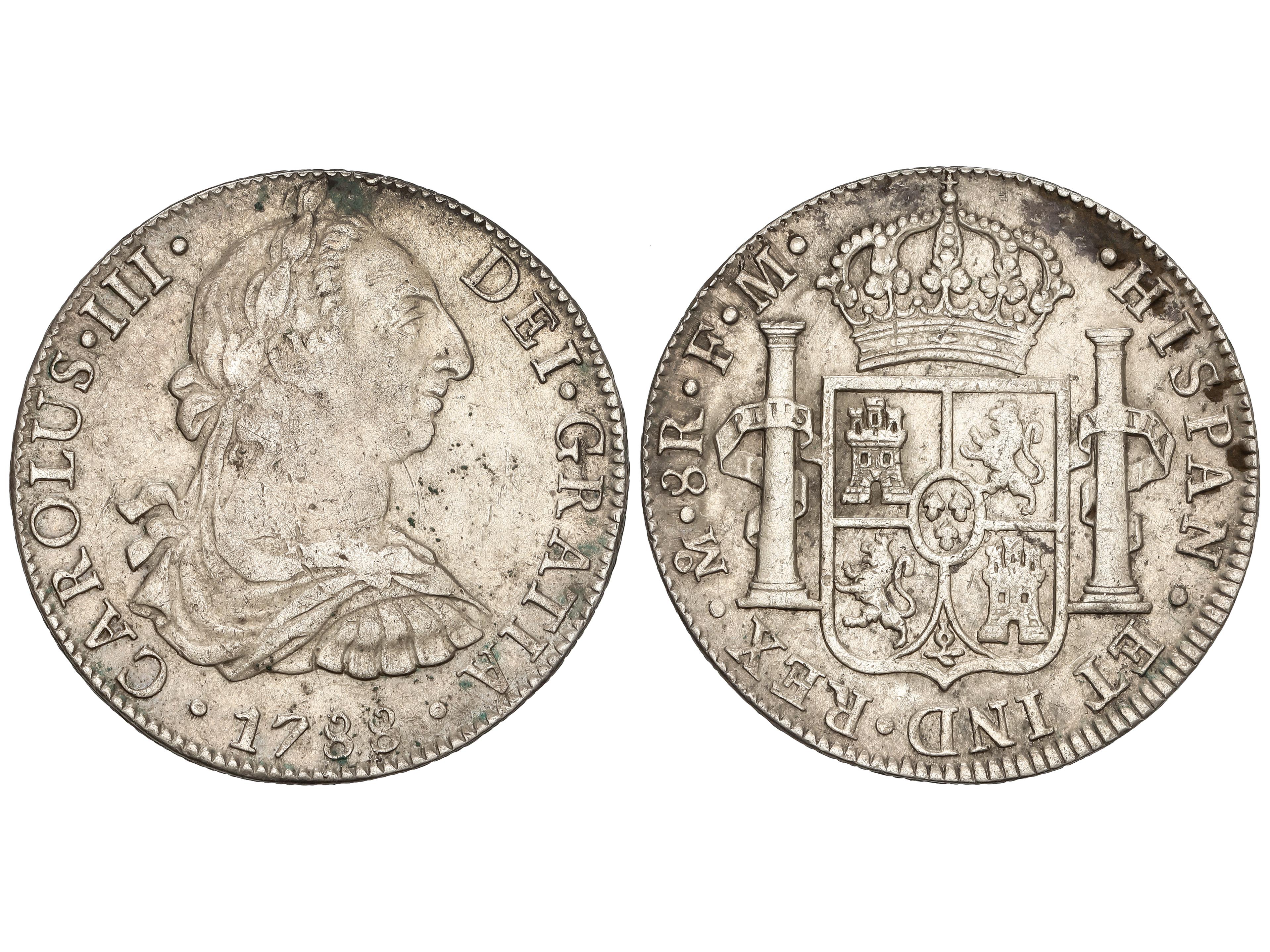 8 Reales. 1788. MÉXICO. F.M. 26,81 grs. (Leves oxidaciones, algunas limpiadas). AC-1132. MBC+. (Image1)