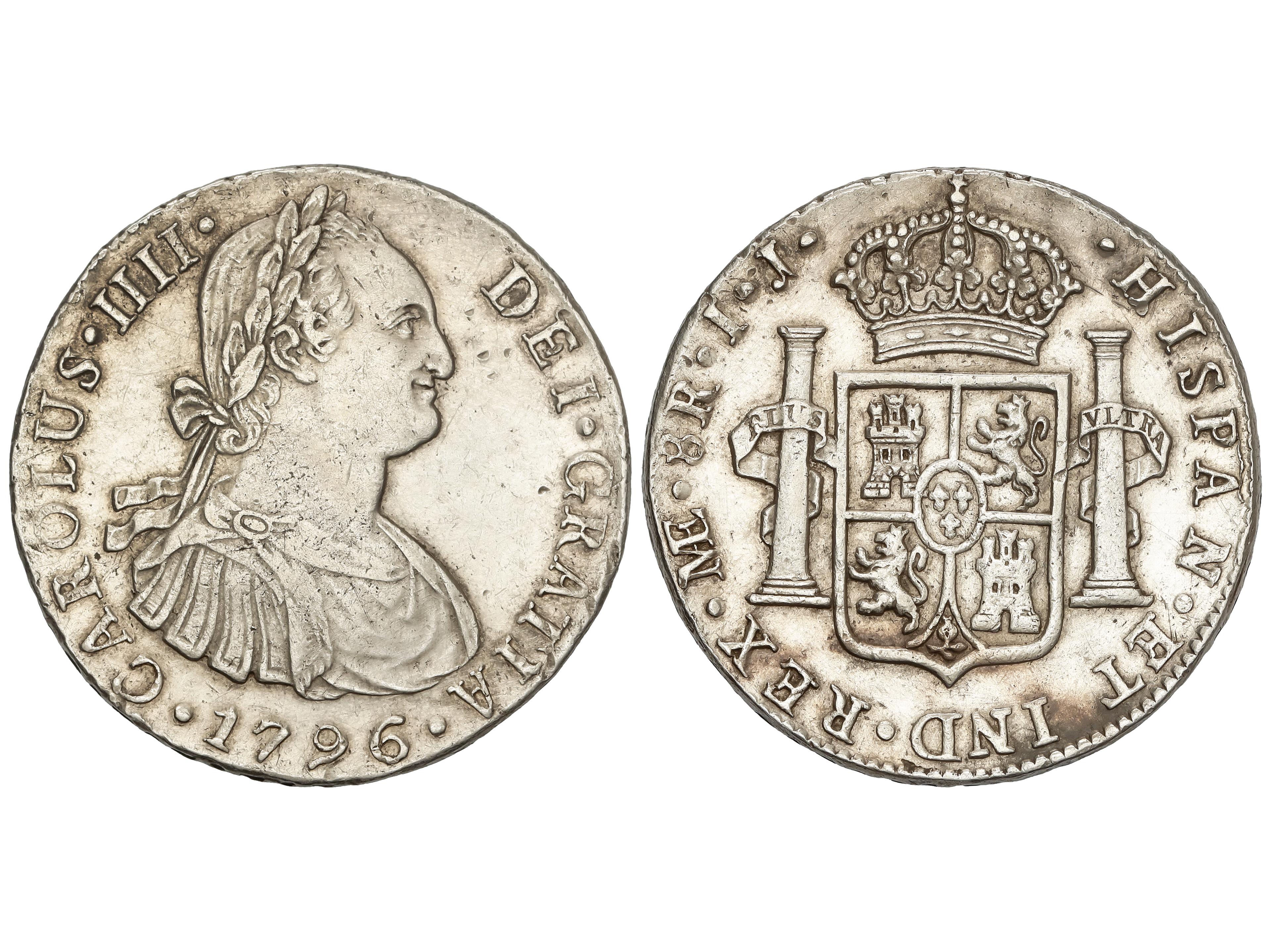 8 Reales. 1796. LIMA. I.J. 26,81 grs. (Leves golpecitos, algo limpiada). AC-913. MBC+. (Image1)