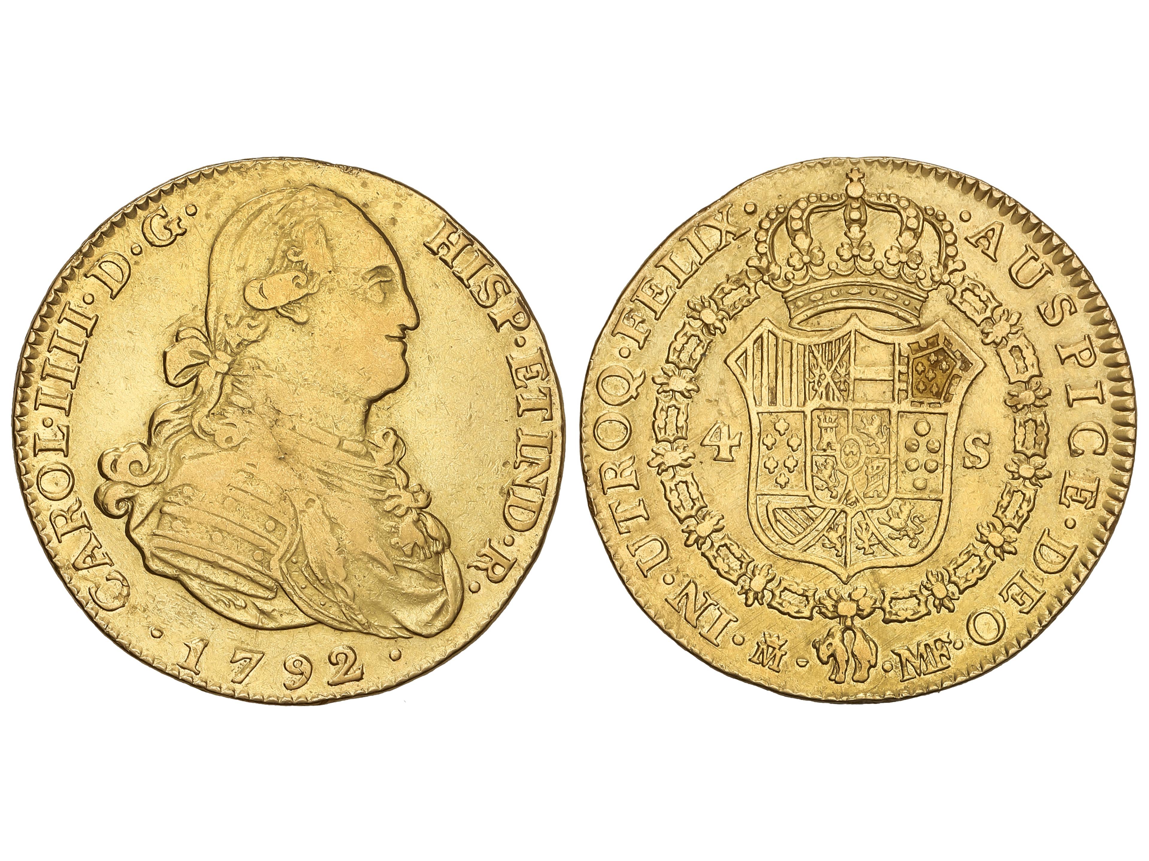 4 Escudos. 1792. MADRID. M.F. 13,30 grs. (Posiblemente ha estado en aro). AC-1475. (MBC). (Image1)