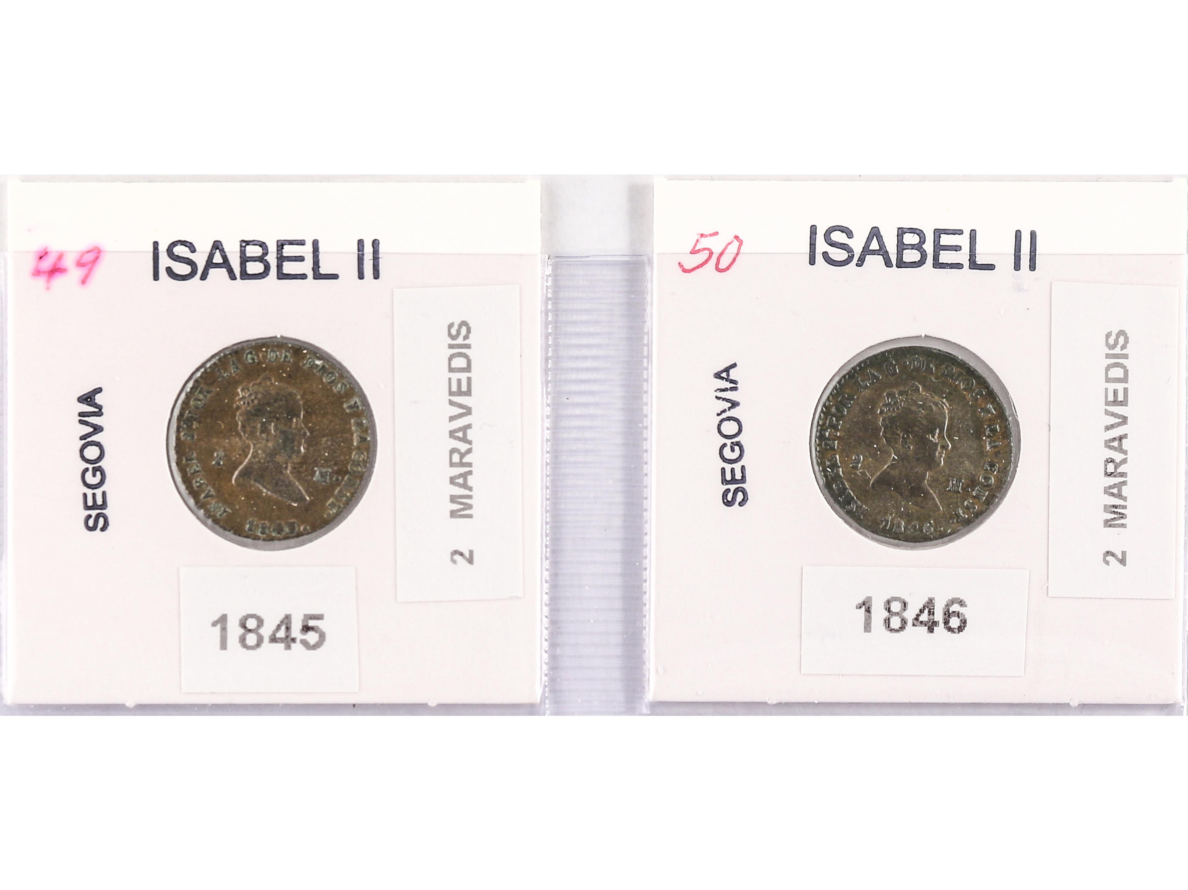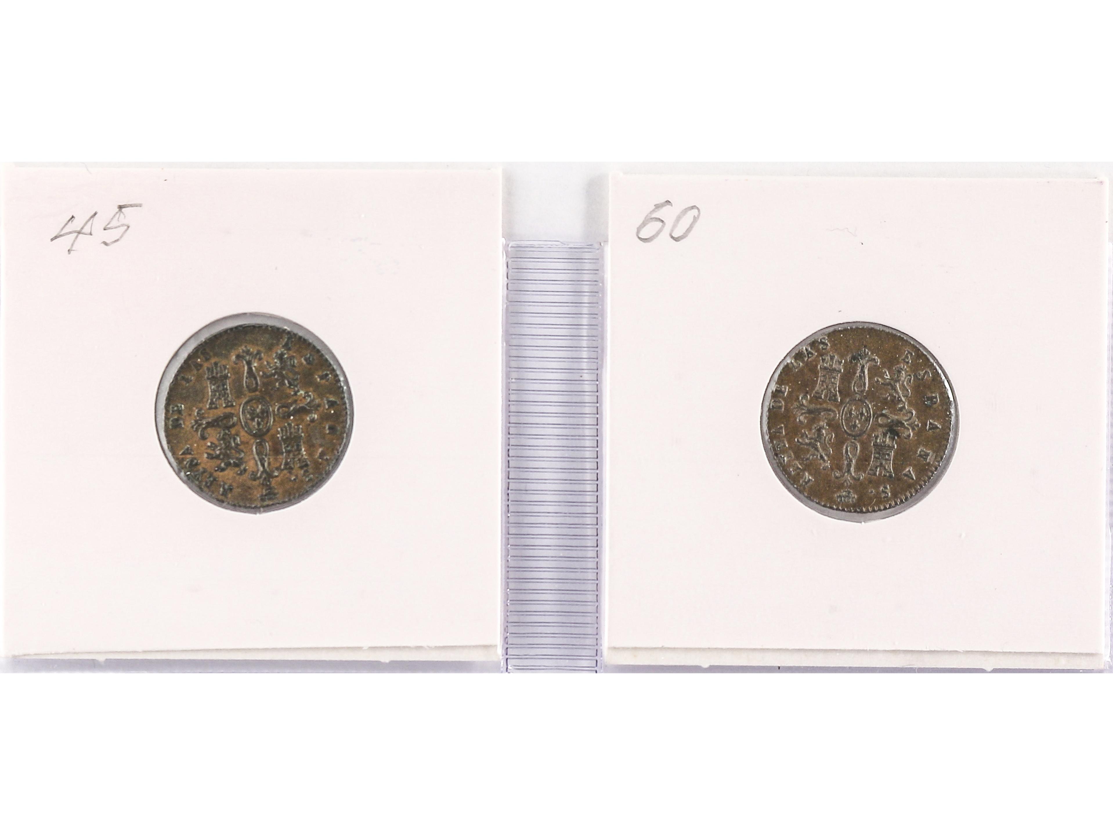 Lote 2 monedas 2 Maravedís. 1845 y 1846. SEGOVIA. AC- 57, 58. EBC-. (Image1) (Image2)