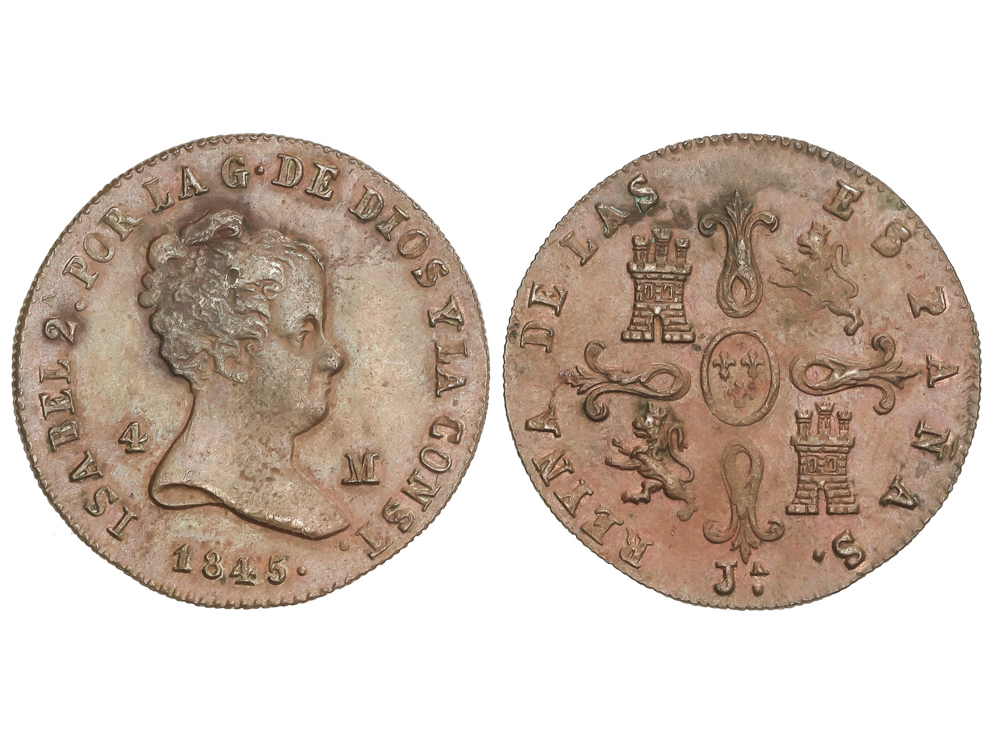 4 Maravedís. 1845. JUBIA. Patina irisada. AC-71. EBC. (Image1)