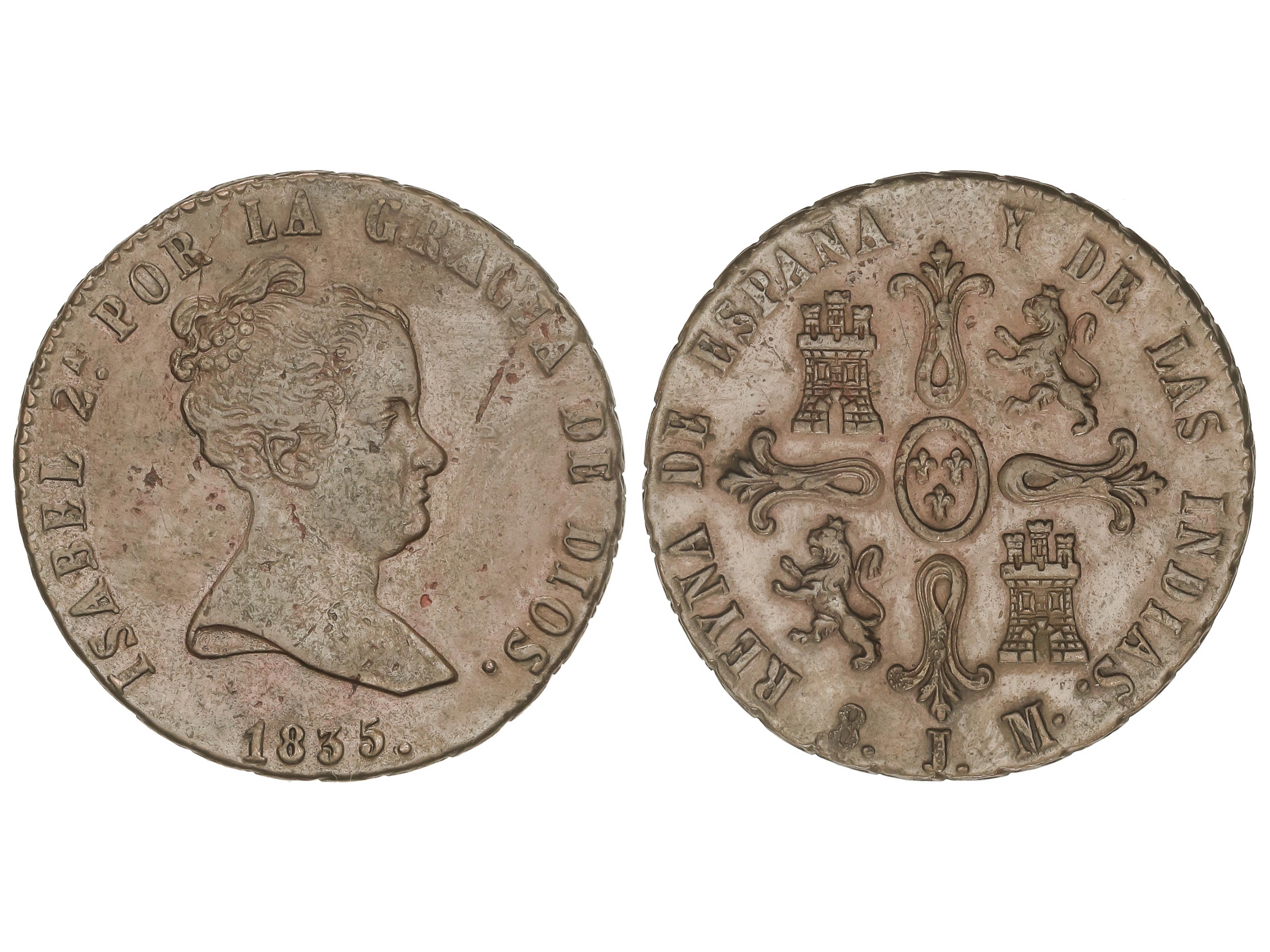 8 Maravedís. 1835. JUBIA. 10,36 grs. (Golpecitos). ESCASA. AC-101. MBC+. (Image1)