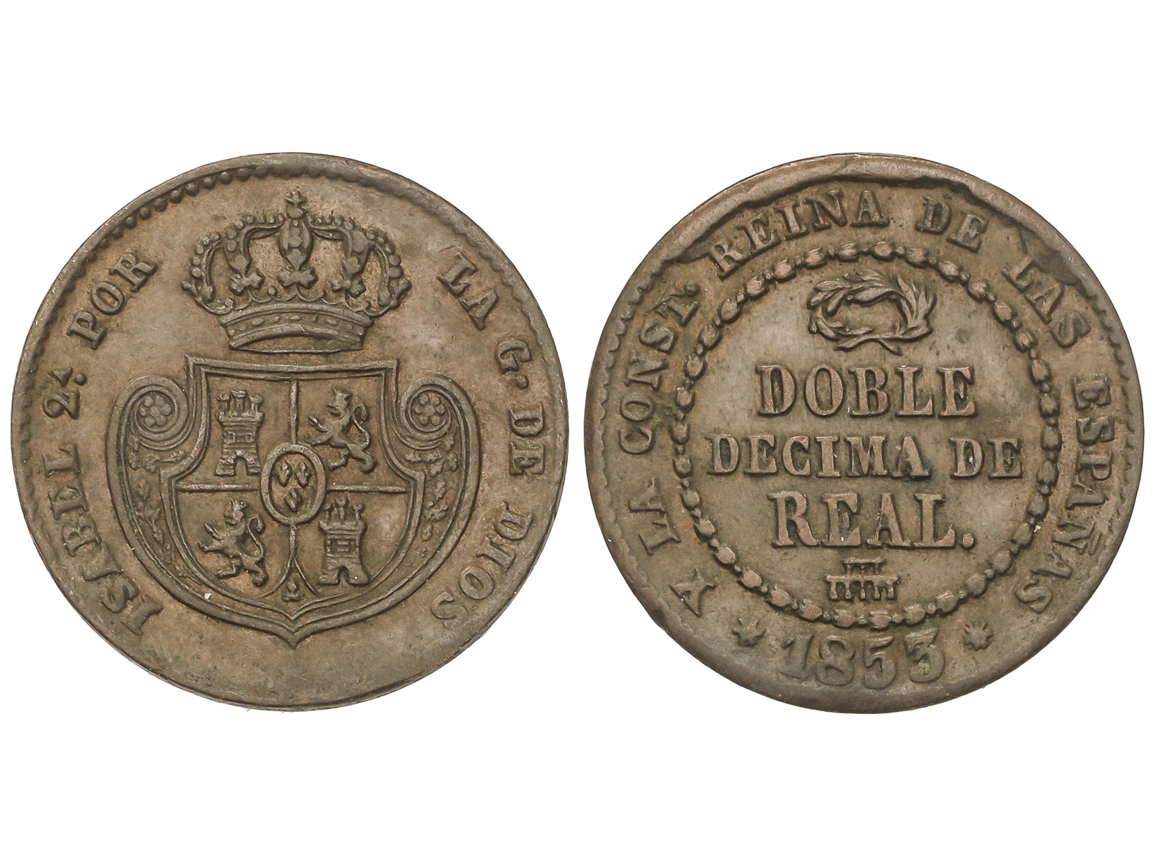 Doble Décima de Real. 1853. SEGOVIA. 7,38 grs. ESCASA. AC-148. MBC+. (Image1)