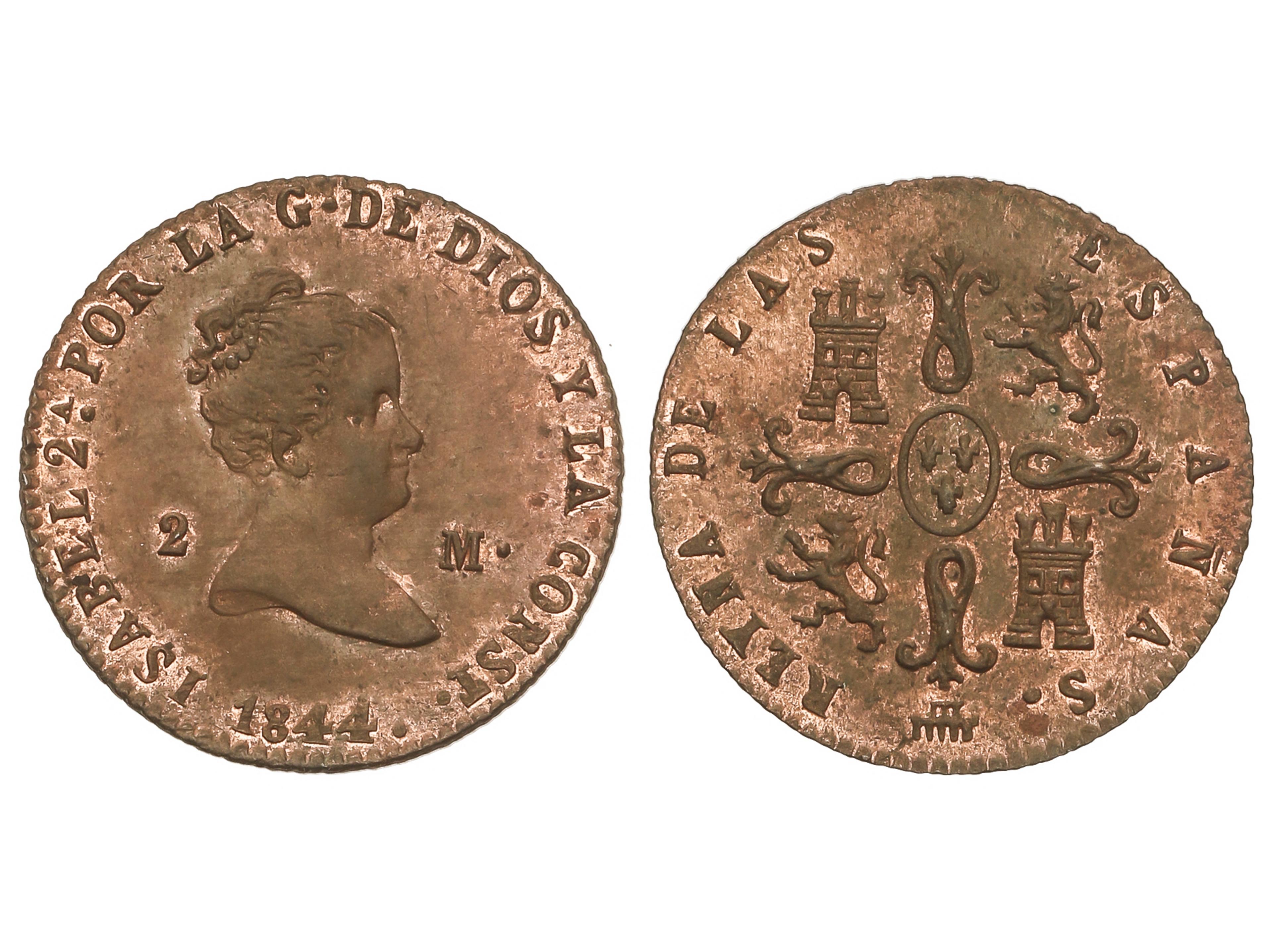 2 Maravedís. 1844. SEGOVIA. 2,35 grs. Parte de color y brillo. AC-56. SC-. (Image1)