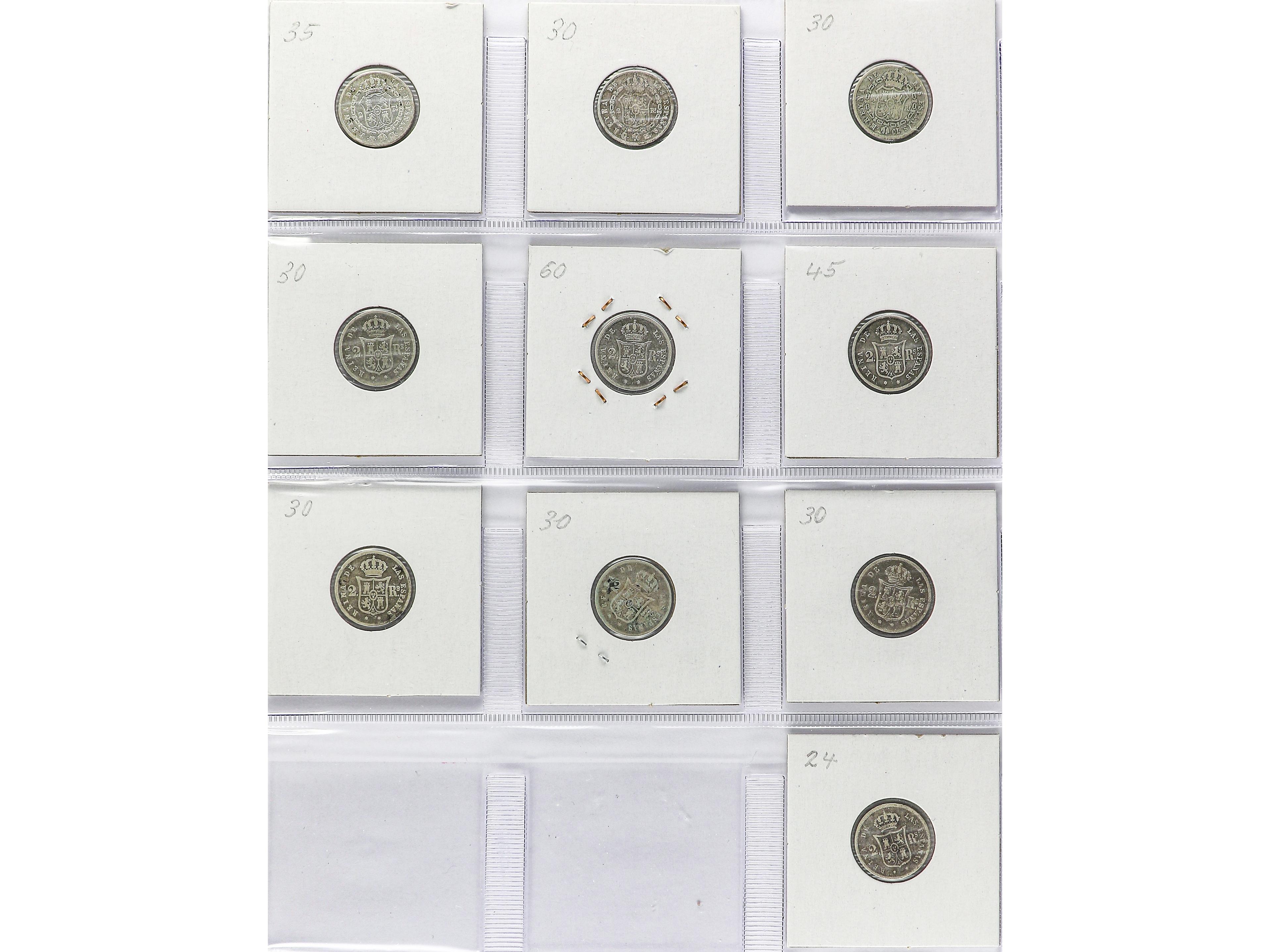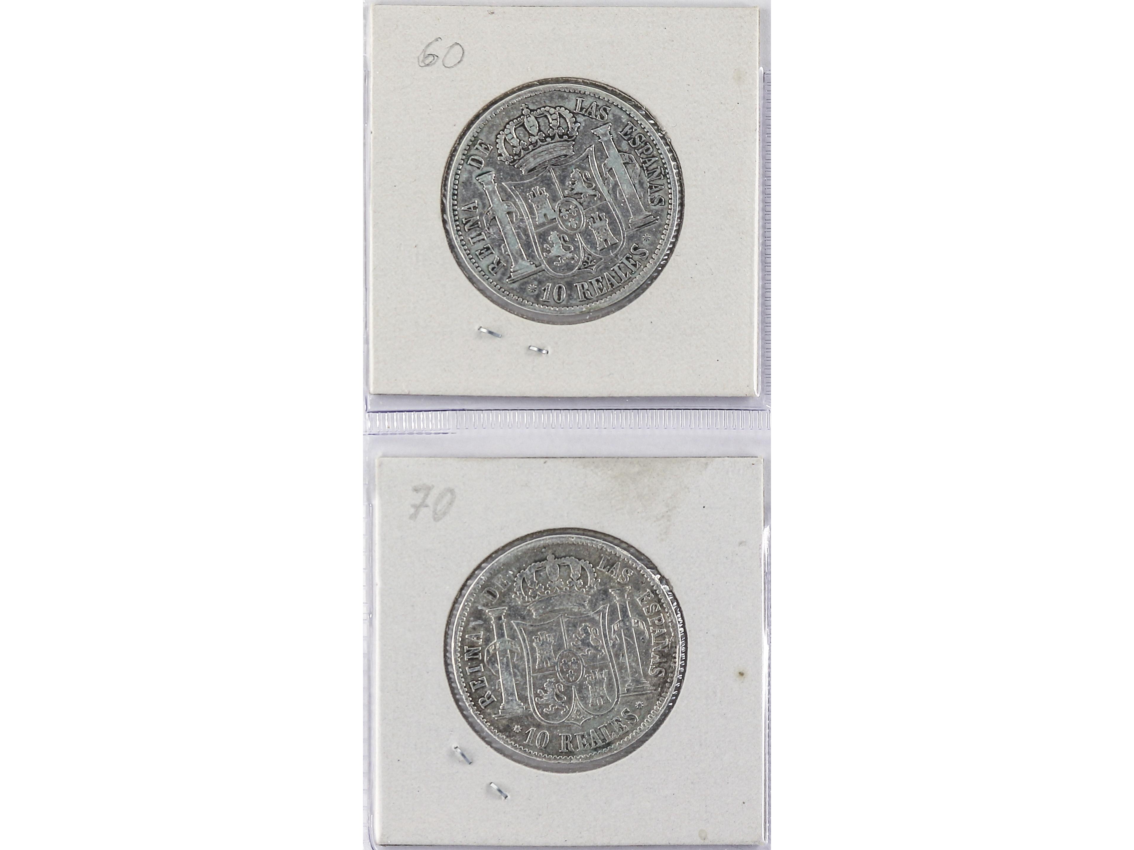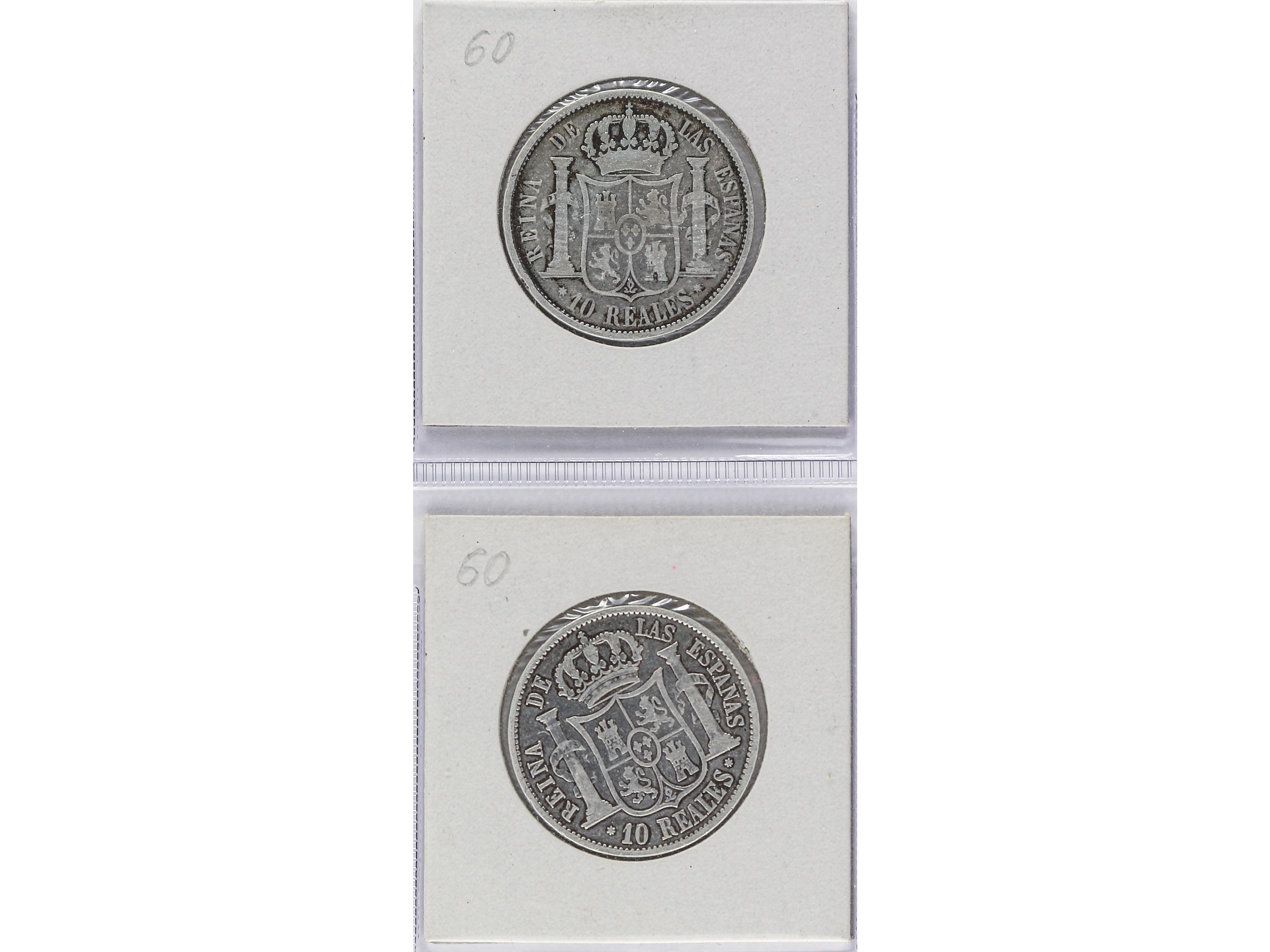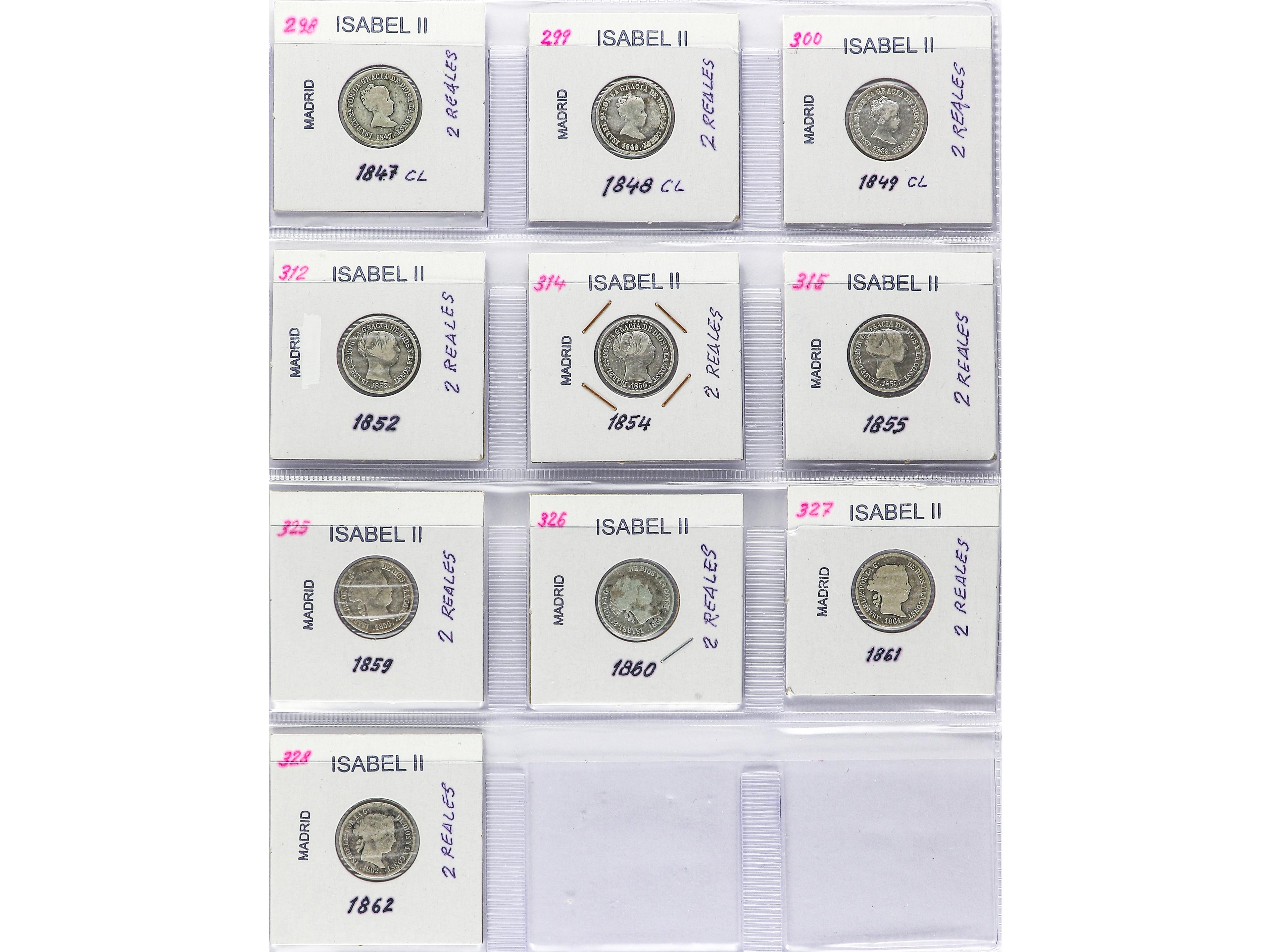 Lote 10 monedas 2 Reales. 1847 a 1862. MADRID. Todas diferentes. A EXAMINAR. AC-364/7, 369/70 y 374/7. BC a MBC.