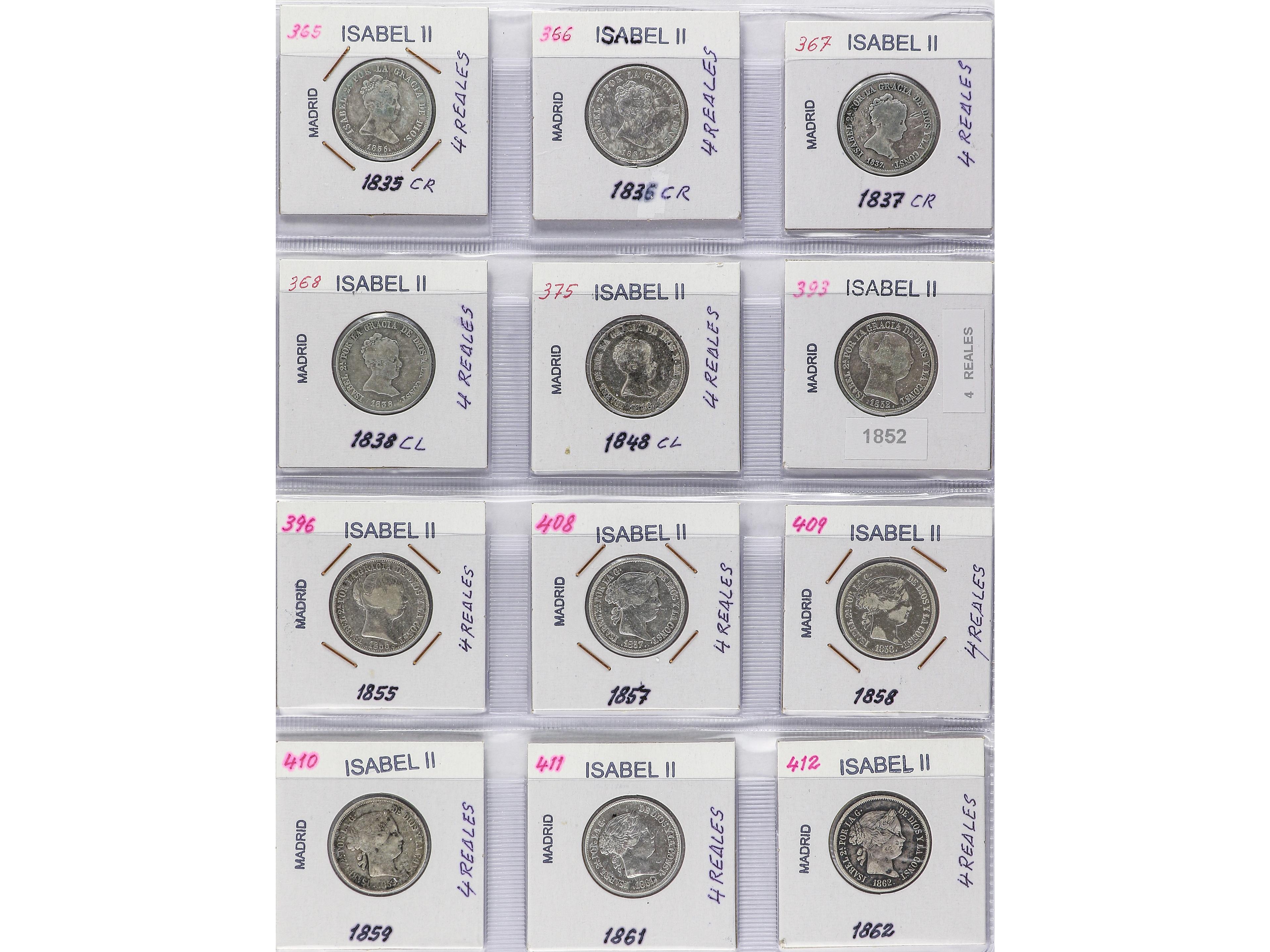 Lote 14 monedas 4 Reales. 1835 a 1864. MADRID. Todas diferentes. A EXAMINAR. AC-442/445, 453, 457, 460, 463/469. BC a MBC+.