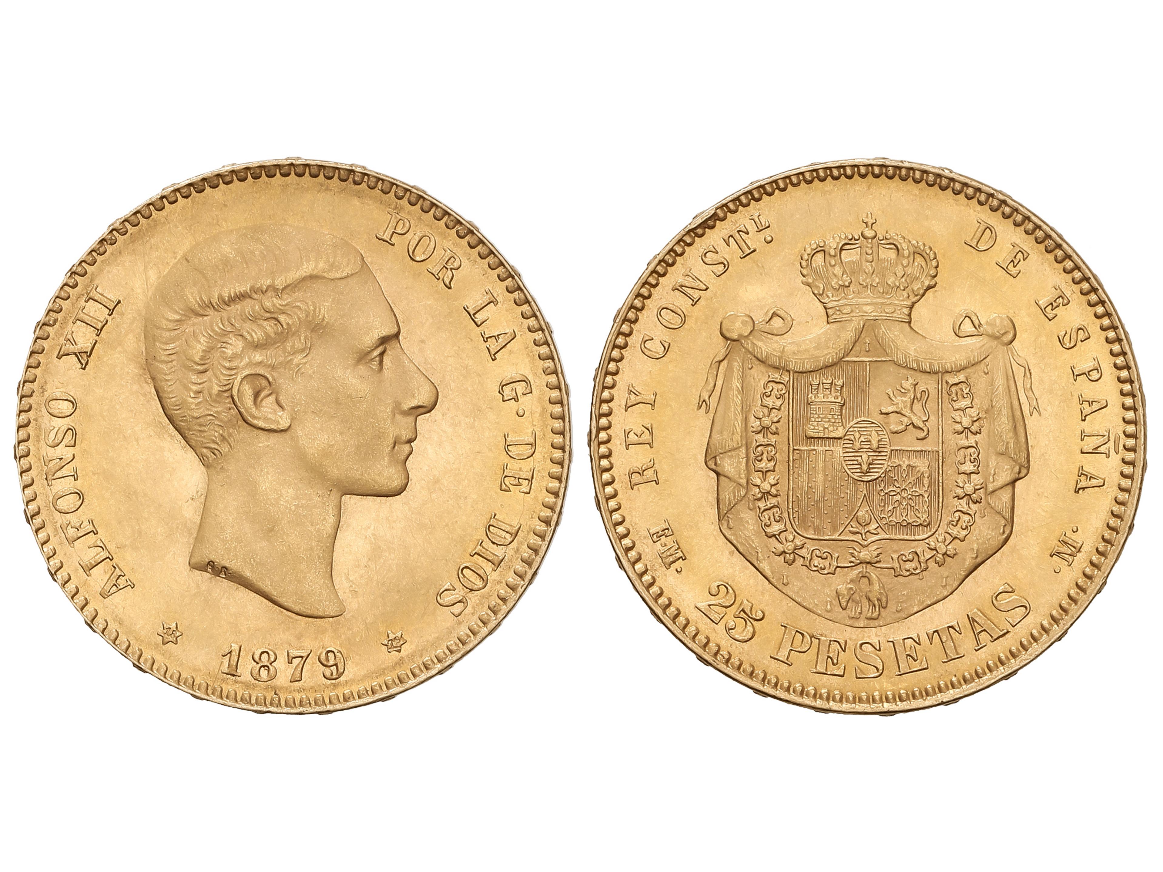 1885 image25 Pesetas. 1879 (*18-79). E.M-M. 8,05 grs. AU (900). AC-74. EBC. (Image1)