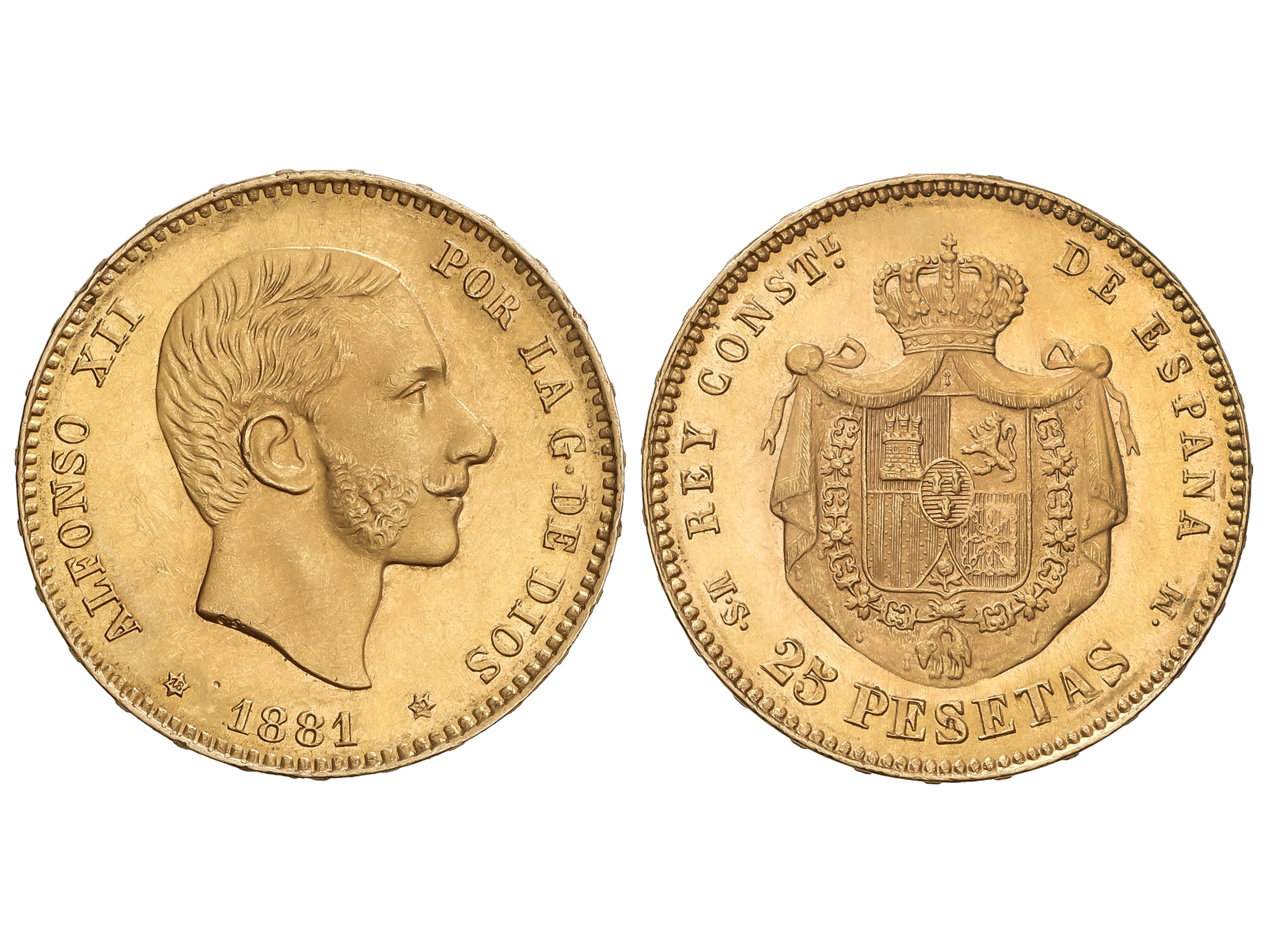 1887 image25 Pesetas. 1881 (*18-81). M.S.M. 8,04 grs. AU (900). AC-82. EBC. (Image1)