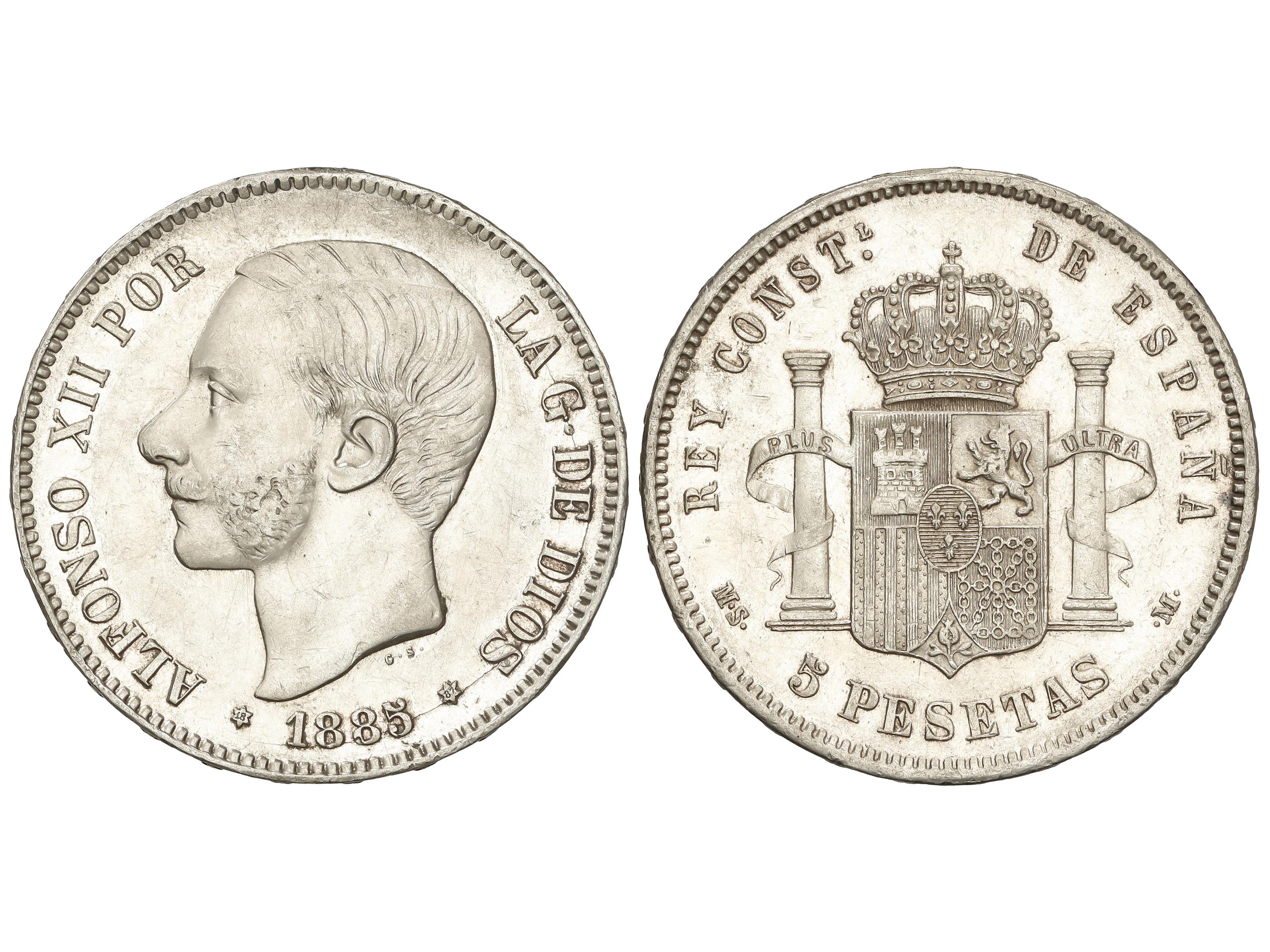 1881 image5 Pesetas. 1885 (*18-87). M.S-M. MBC+. (Image1)