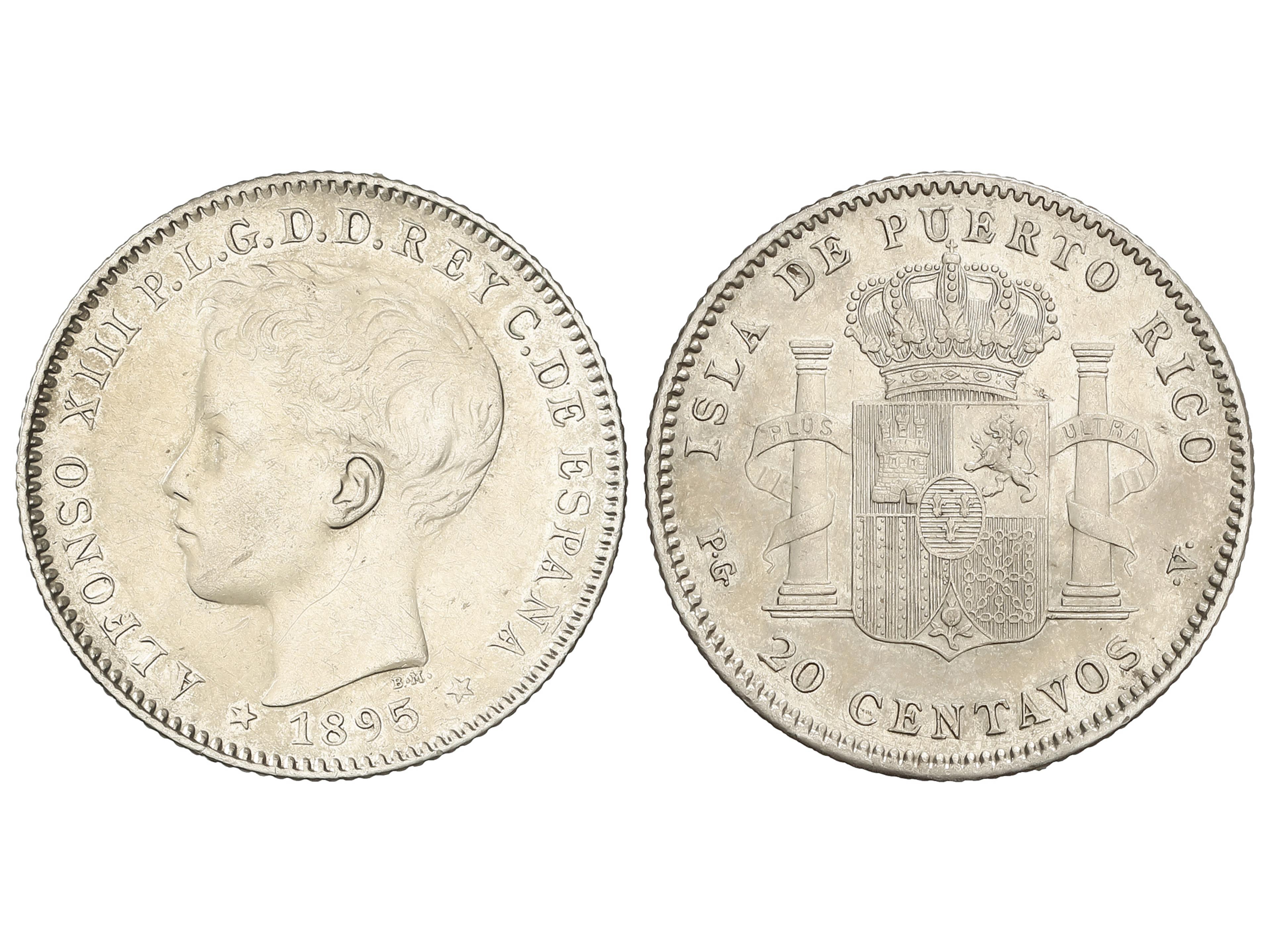 1894 image20 Centavos de Peso. 1895. PUERTO RICO. P.G-V. (Rayita en anverso). MBC+-EBC-. (Image1)