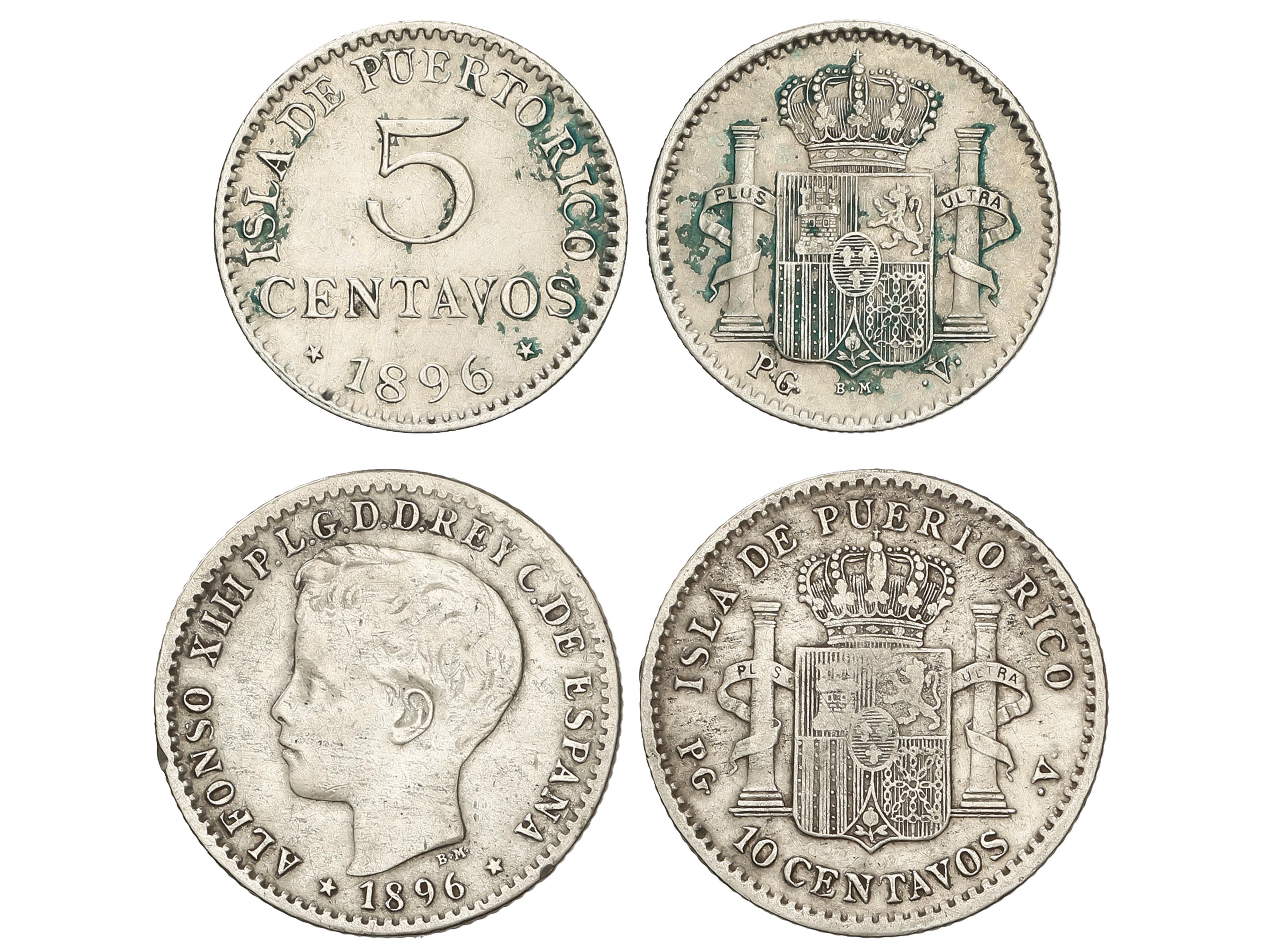 1892 image5 y 10 Centavos de Peso. 1896. PUERTO RICO. P.G-V. MBC y MBC-. (Image1)