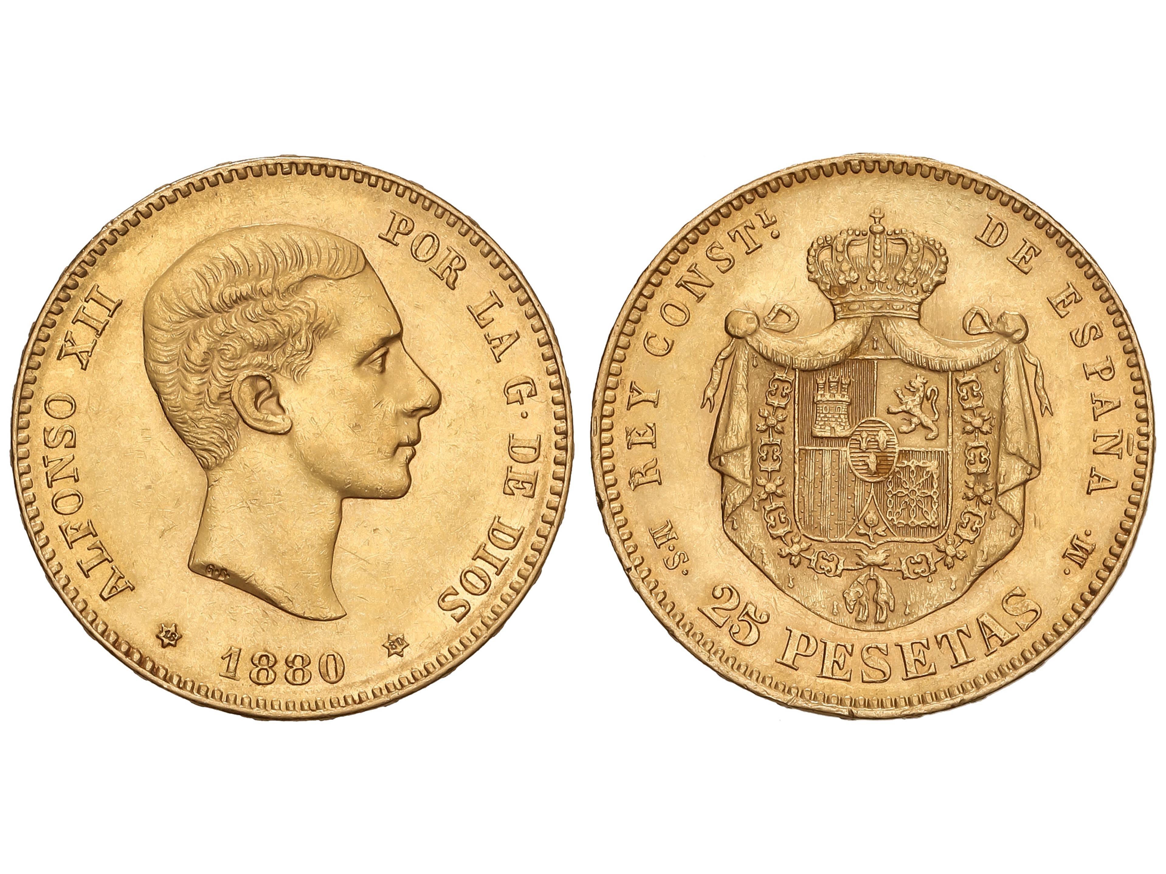 1886 image25 Pesetas. 1880 (*18-80). M.S.-M. 8,05 grs. AU (900). EBC-. (Image1)