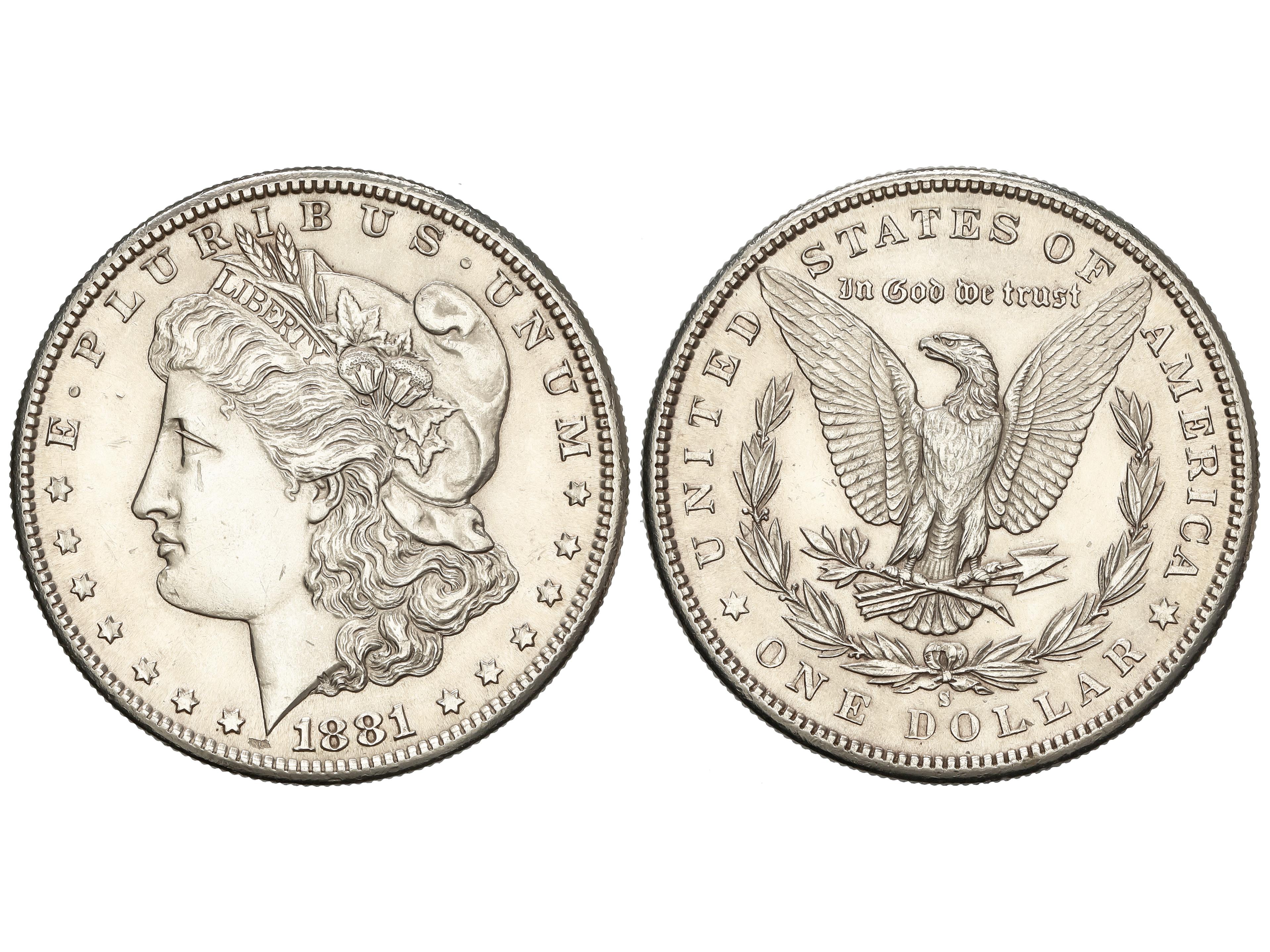 1955 image1 Dollar. 1881. SAN FRANCISCO. 26,64 grs. Tipo Morgan. (Rayita en ojo). KM-110. EBC. (Image1)