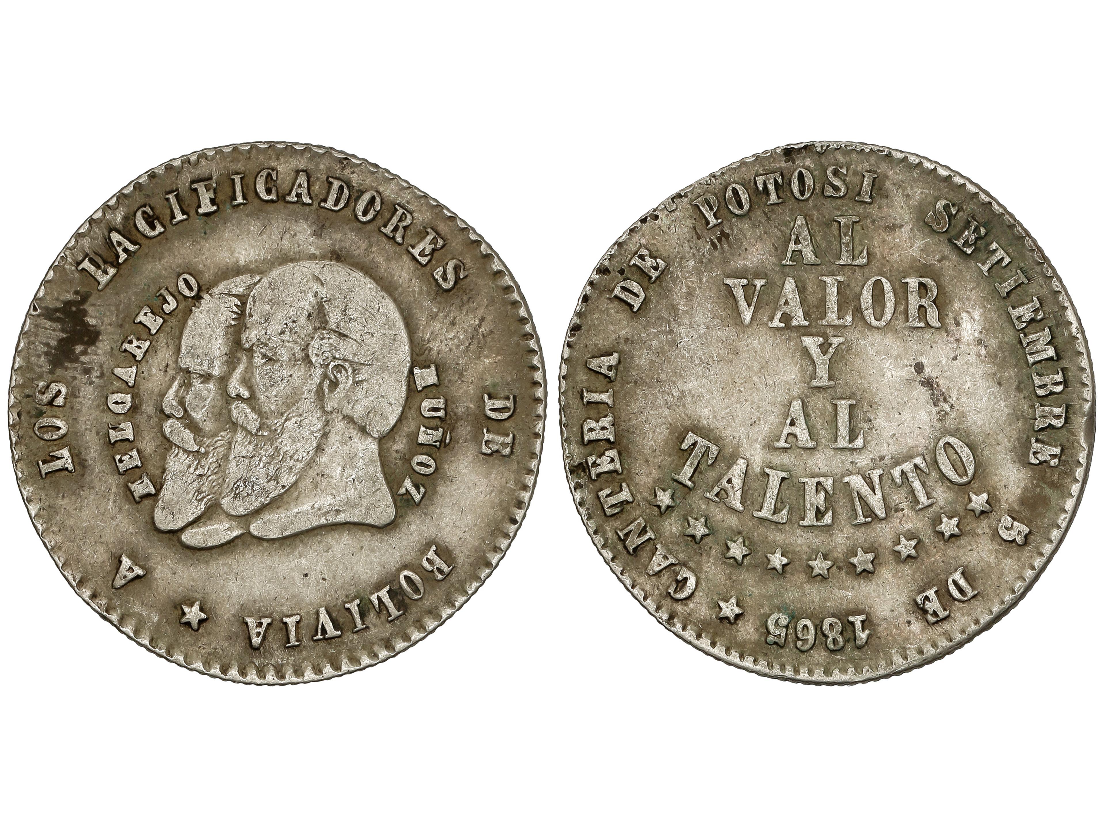 1953 imageMedalla A los Pacificadores de Bolivia. 1865. BOLIVIA. 9,97 grs. AR. Al valor y al talento. 31 mm. Melgarejo y Muñoz. A EXAMINAR. ESCASA. MBC-. (Image1)