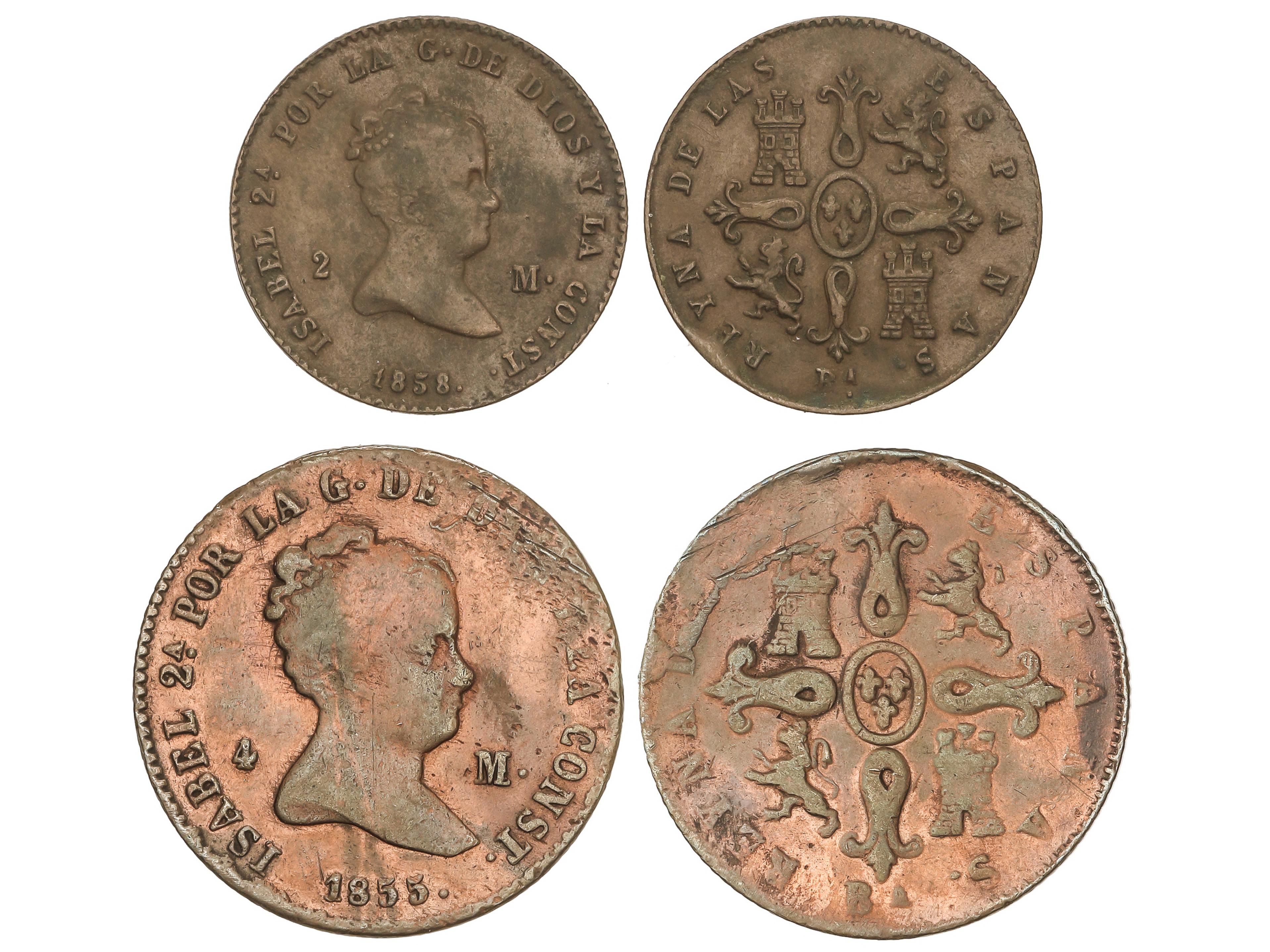 2052 imageLote 2 monedas 2 y 4 Maravedís. 1858 y 1855. BARCELONA. AC- 37, 65. MBC y MBC-. (Image1)